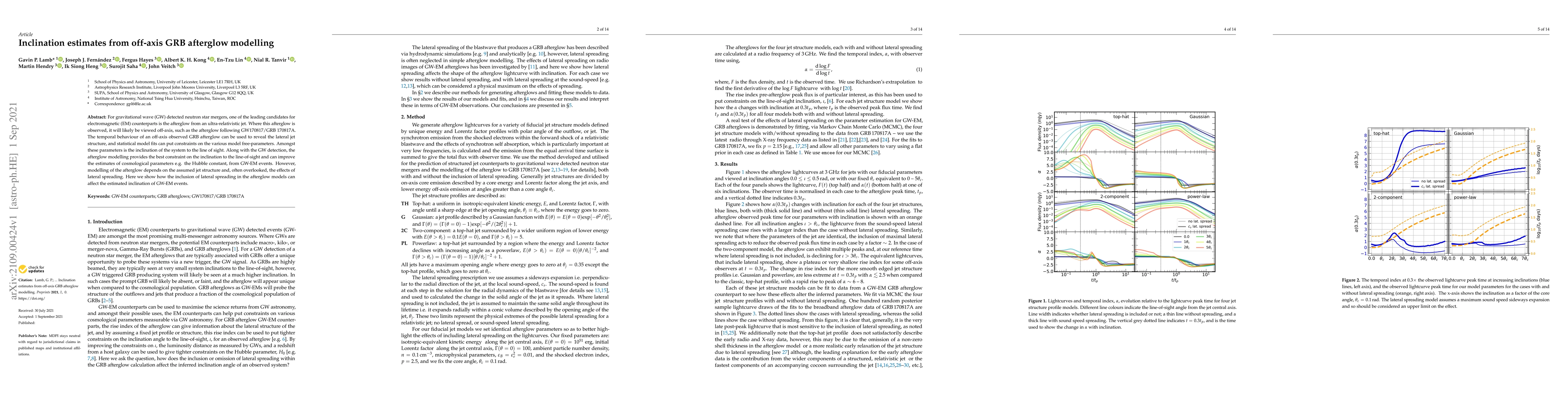 For gravitational wave (GW) detected neutron star mergers, one of the leading candidates for electromagnetic (EM) counterparts is the afterglow from an ultra-relativistic jet. Where this afterglow is observed, it will likely be viewed off-axis, such as the afterglow following GW170817/GRB 170817A. The temporal behaviour of an off-axis observed GRB afterglow can be used to reveal the lateral jet structure, and statistical model fits can put constraints on the various model free-parameters. Amongst these parameters is the inclination of the system to the line of sight. Along with the GW detection, the afterglow modelling provides the best constraint on the inclination to the line-of-sight and can improve the estimates of cosmological parameters e.g. the Hubble constant, from GW-EM events. However, modelling of the afterglow depends on the assumed jet structure and, often overlooked, the effects of lateral spreading. Here we show how the inclusion of lateral spreading in the afterglow models can affect the estimated inclination of GW-EM events.