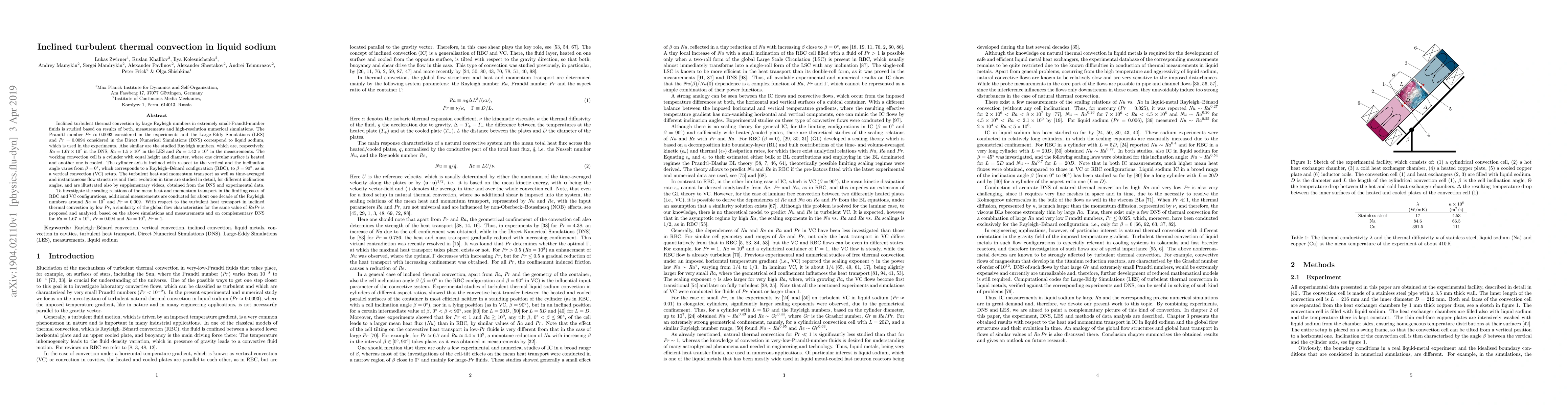 Researchers studied turbulent thermal convection in liquid sodium with different inclination angles, finding similarities in global flow characteristics for varying Rayleigh numbers and Prandtl number.