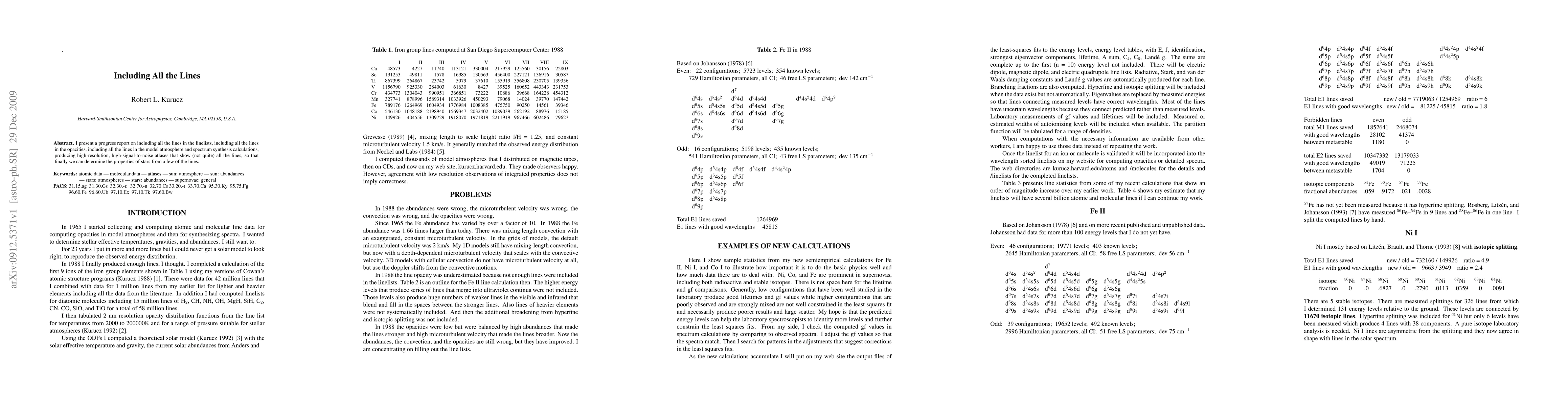 I present a progress report on including all the lines in the linelists, including all the lines in the opacities, including all the lines in the model atmosphere and spectrum synthesis calculations, producing high-resolution, high-signal-to-noise atlases that show (not quite) all the lines, so that finally we can determine the properties of stars from a few of the lines.