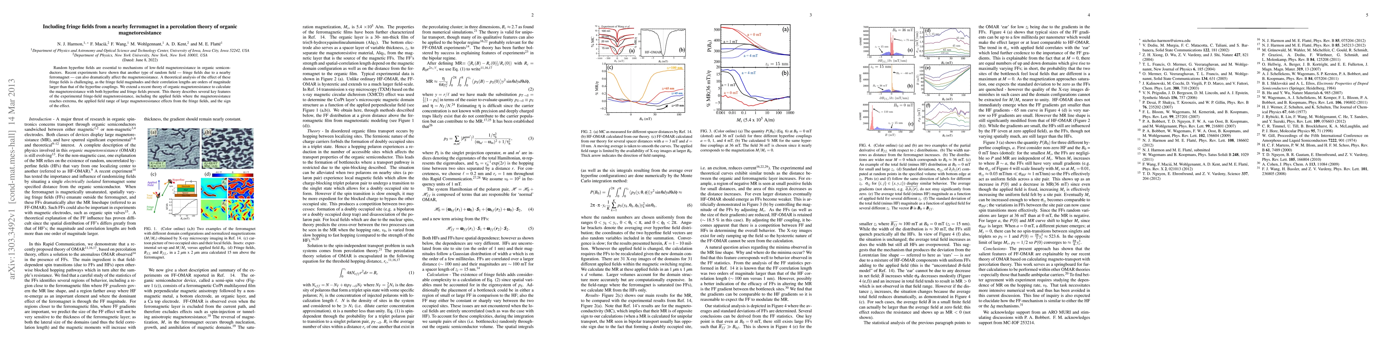 Title: Including fringe fields from a nearby ferromagnet in a percolation theory of organic magnetoresistance Summary: The paper extends a theory of organic magnetoresistance to account for fringe fields from nearby ferromagnets, explaining experimental observations of significant fringe-field effects on magnetoresistance and predicting key features such as extrema and the range of large effects.