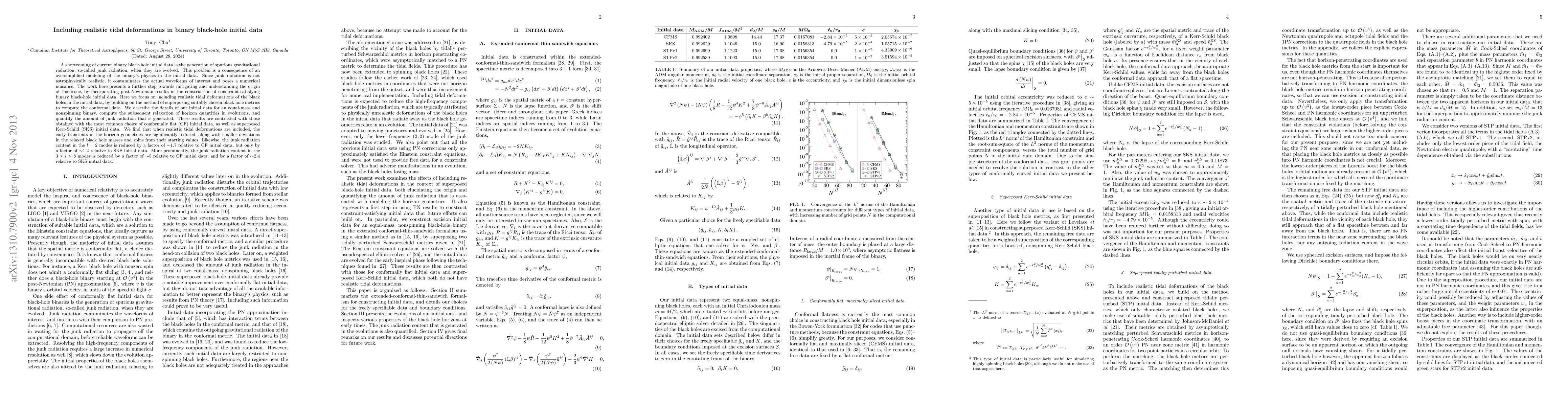 This paper addresses the issue of spurious gravitational radiation in binary black-hole simulations by incorporating realistic tidal deformations into the initial data. The inclusion of these deformations significantly reduces junk radiation, especially in higher-order modes, compared to traditional conformally flat and superposed Kerr-Schild initial data.