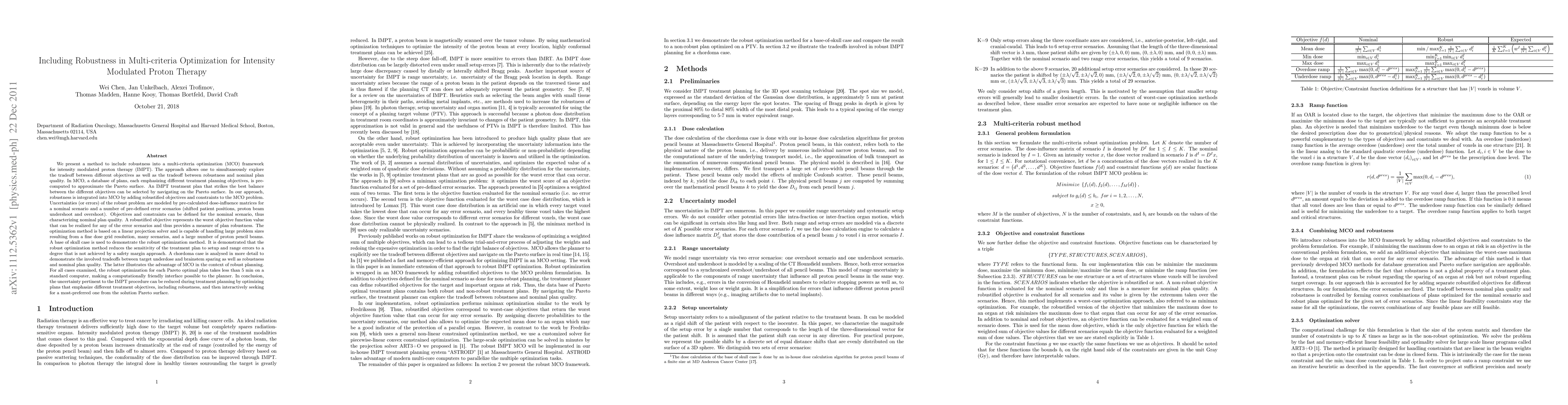 This paper presents a method to integrate robustness into multi-criteria optimization for intensity-modulated proton therapy, allowing simultaneous exploration of trade-offs between different objectives and robustness. The approach uses a linear projection solver to efficiently handle large problem sizes and demonstrates reduced sensitivity to errors compared to safety margin methods.