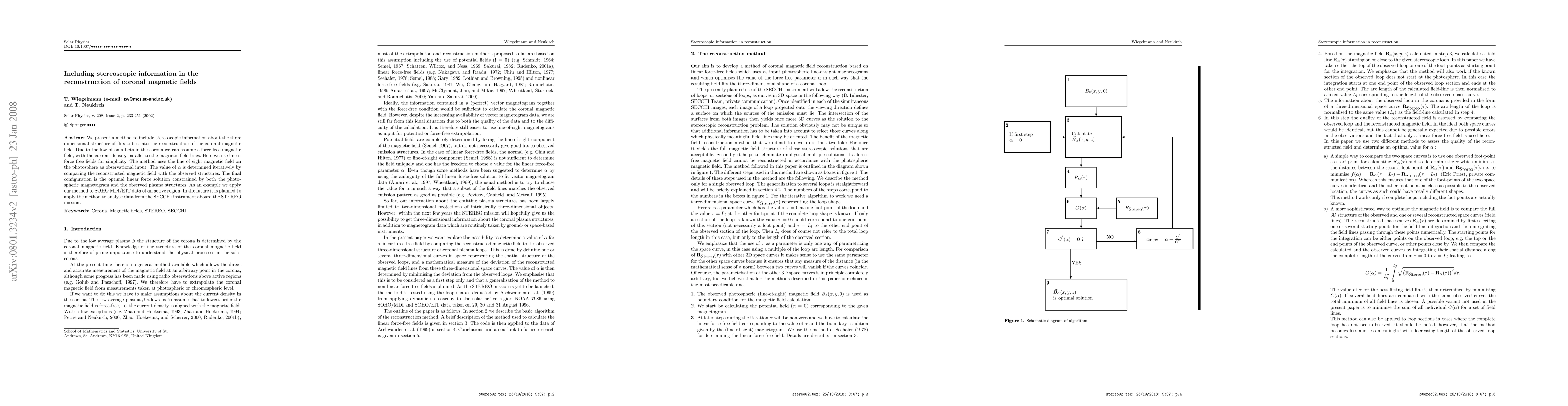 Researchers developed a method to include stereoscopic information in coronal magnetic field reconstruction, achieving more accurate results with force-free field models.