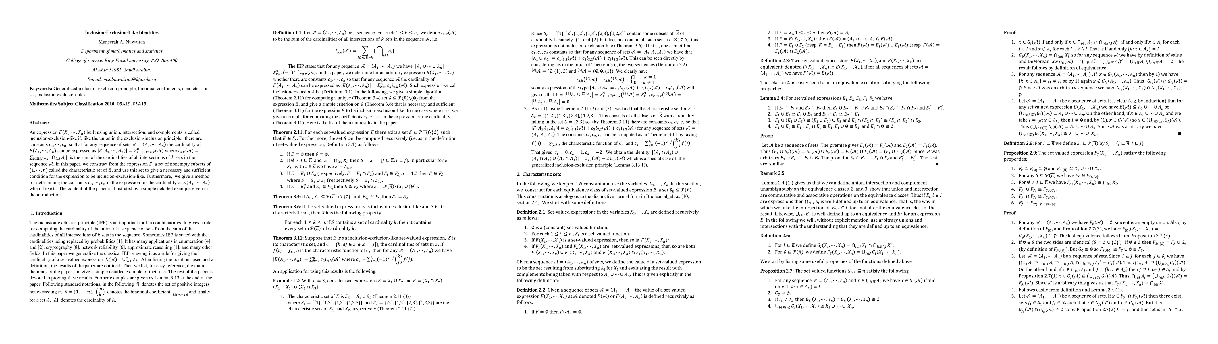 This paper explores the structure of inclusion-exclusion-like expressions, defining a characteristic set for such expressions and providing a necessary and sufficient condition for their validity. The authors also present a method to determine the constants in these expressions, illustrated with a detailed example.