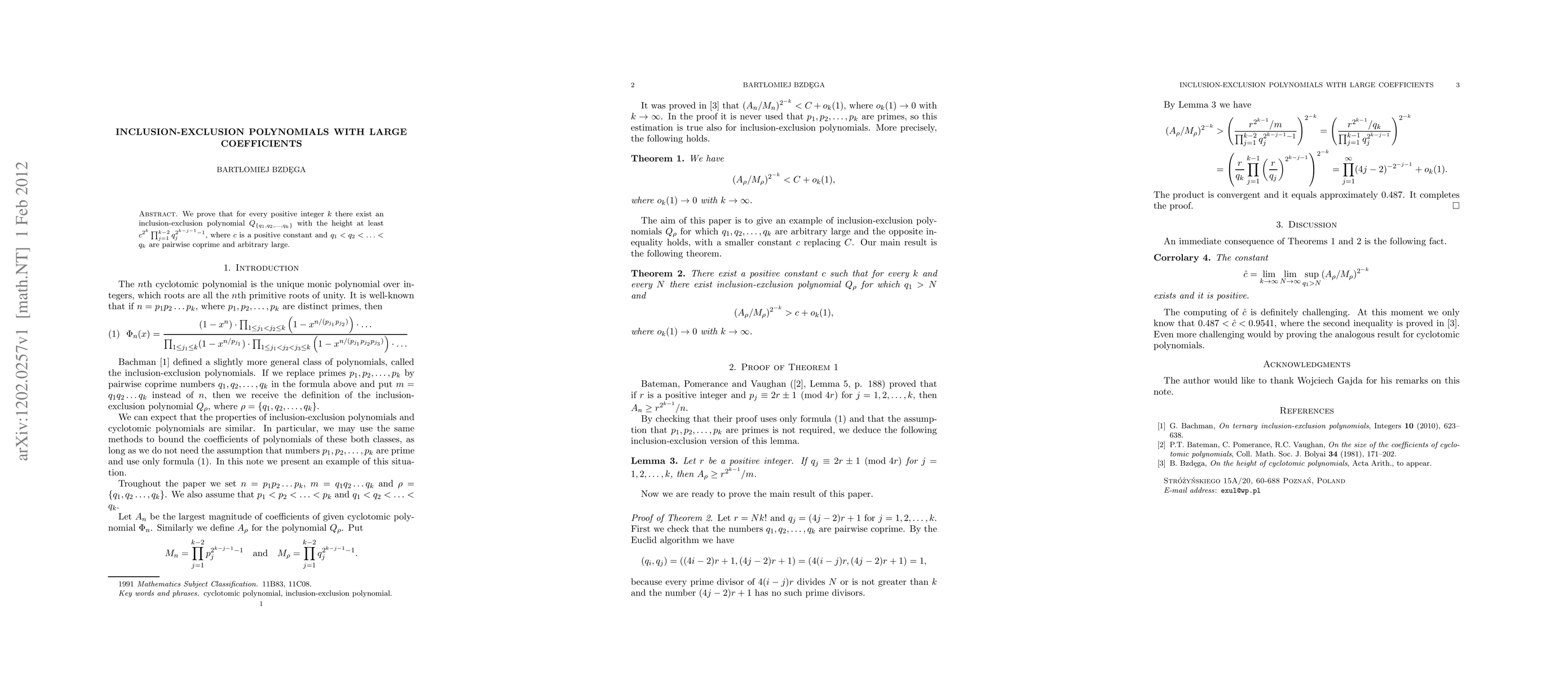 Researchers prove existence of polynomials with large coefficients using inclusion-exclusion principles, setting a lower bound on their height for any given number of variables.