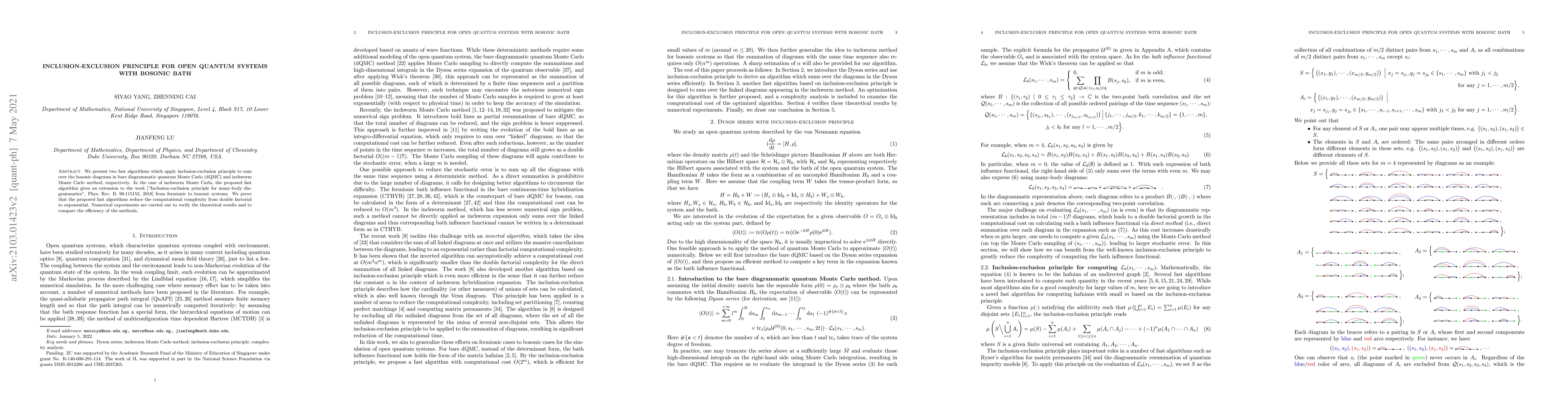 Researchers developed fast algorithms for simulating open quantum systems with bosonic baths using inclusion-exclusion principle, reducing computational complexity from double factorial to exponential.