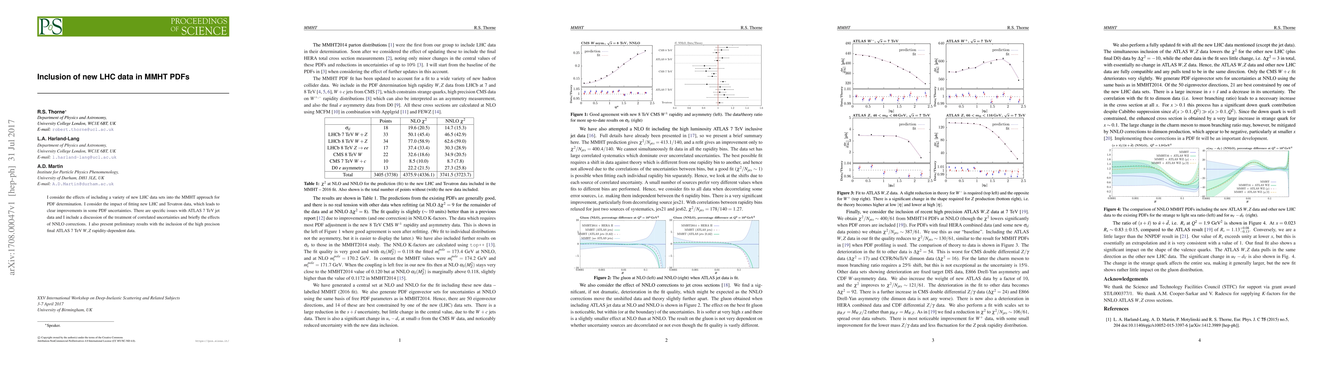 The paper presents an updated version of MMHT PDFs that incorporate new LHC and Tevatron data, providing improved PDF uncertainties and a more accurate description of parton distributions.