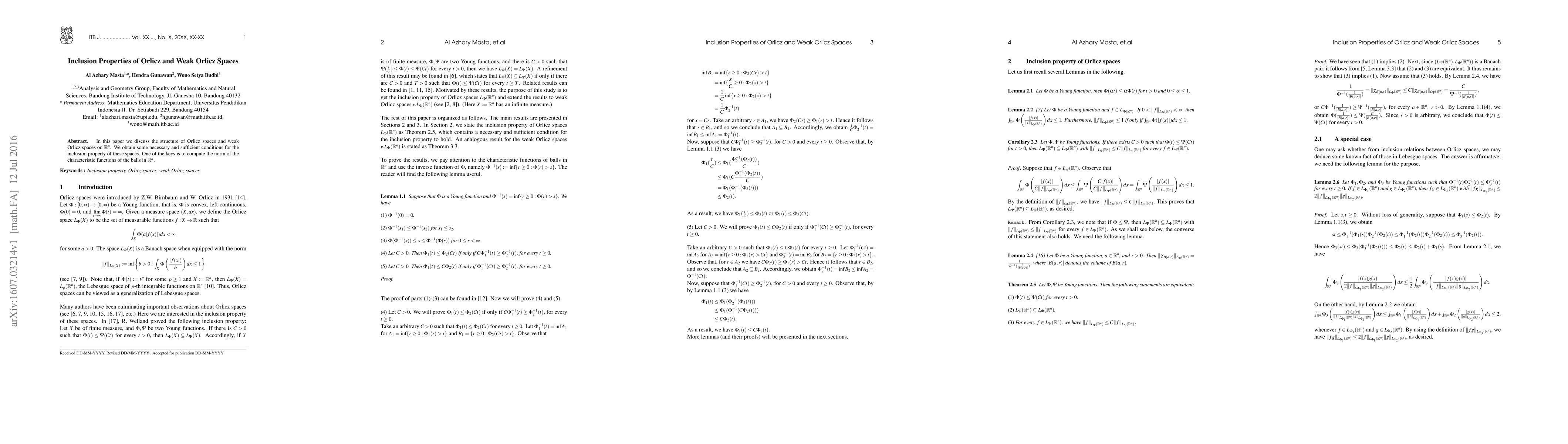This paper investigates the inclusion properties of Orlicz and weak Orlicz spaces in $\mathbb{R}^n$, establishing necessary and sufficient conditions for these inclusions by analyzing the norms of characteristic functions of balls.