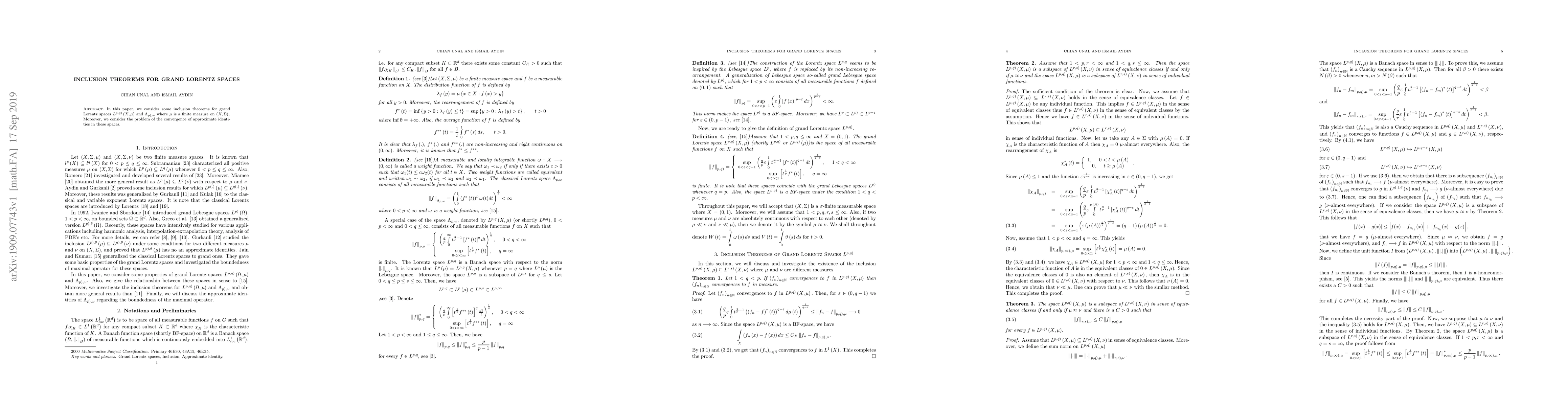 In this paper, we consider some inclusion theorems for grand Lorentz spaces $L^{p,q)}\left( X,\mu \right) $ and $\Lambda _{p),\omega }$ where $\mu $ is a finite measure on $\left( X,\Sigma \right) .$ Moreover, we consider the problem of the convergence of approximate identities in these spaces.