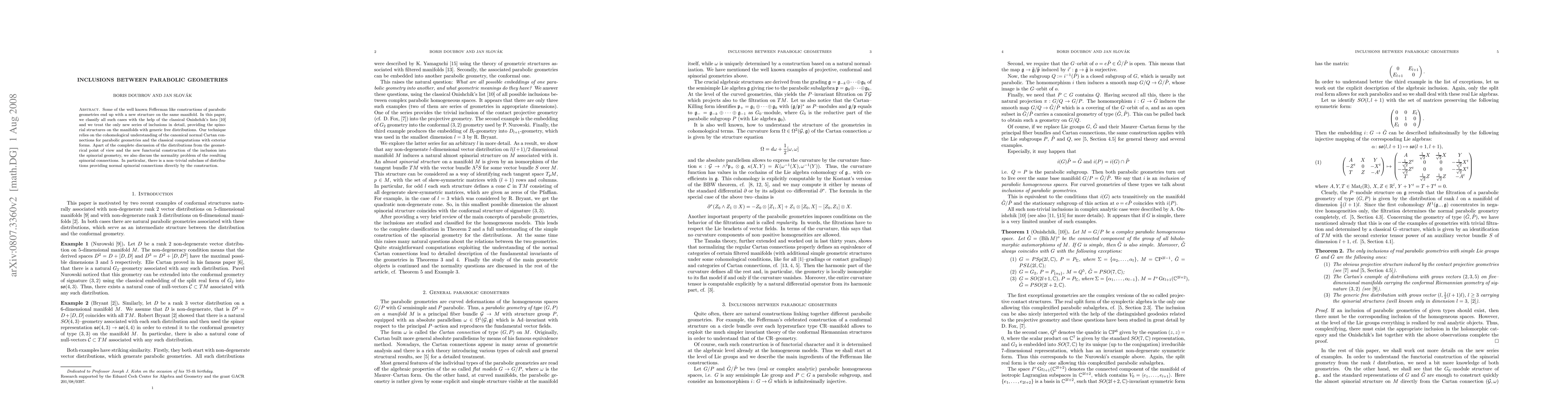 Some of the well known Fefferman like constructions of parabolic geometries end up with a new structure on the same manifold. In this paper, we classify all such cases with the help of the classical Onishchik's lists \cite{onish1} and we treat in detail the only new series of inclusions providing the spinorial structures on the manifolds with generic free distributions. Our technique relies on the cohomological understanding of the canonical normal Cartan connections for parabolic geometries and the classical computations with exterior forms. Apart of the complete discussion of the distributions from the geometrical point of view and the new functorial construction of the inclusion into the spinorial geometry, we also discuss the normality problem of the resulting spinorial connections. In particular, there is a non--trivial subclass of distributions providing normal spinorial connections directly by the construction.