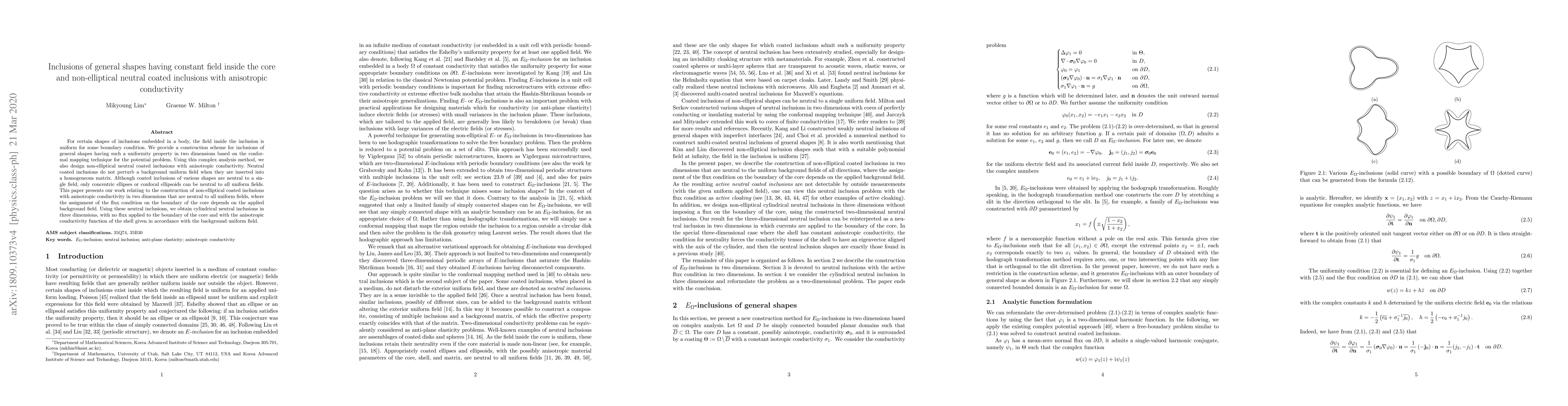 This paper presents a construction scheme for inclusions of general shapes maintaining a constant field inside via conformal mapping, and designs non-elliptical neutral coated inclusions with anisotropic conductivity that do not perturb a background uniform field. The work extends to three dimensions, yielding cylindrical neutral inclusions that maintain neutrality regardless of the applied background field.