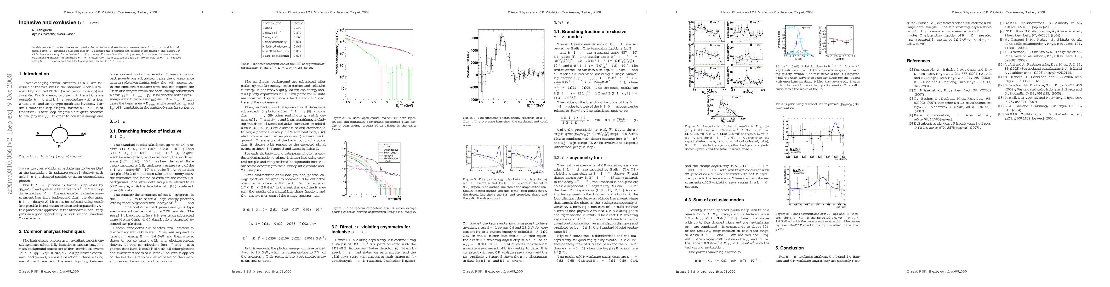 In this article, I review the recent results for inclusive and exclusive measurements for $b\to s\gamma$ and $b\to d\gamma$ decays from $B$ factories Belle and Babar. I describe the measurement of branching fraction and direct CP violating asymmetry for inclusive $B\to X_s\gamma$ decay. For results of $b\to d\gamma$ process, I introduce the measurement of branching fraction of exclusive $b\to d\gamma$ modes, the first measurement for CP asymmetry of $b\to d\gamma$ process using $B\to\rho\gamma$ mode, and semi-inclusive measurement for $B\to X_d\gamma$.