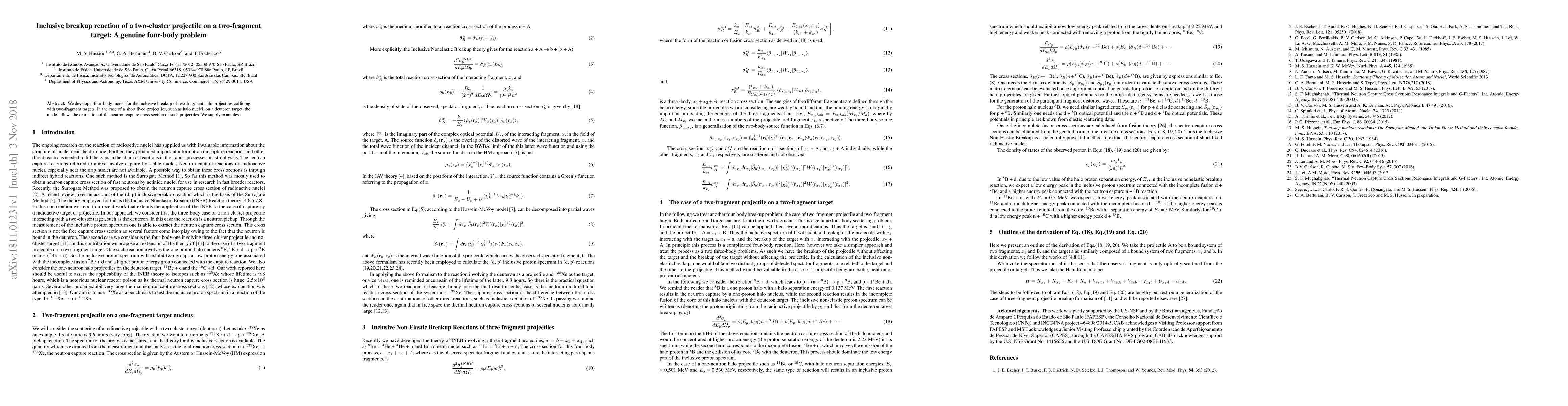 We develop a four-body model for the inclusive breakup of two-fragment halo projectiles colliding with two-fragment targets. In the case of a short lived projectiles, such as halo nuclei, on a deuteron target, the model allows the extraction of the neutron capture cross section of such projectiles. We supply examples.