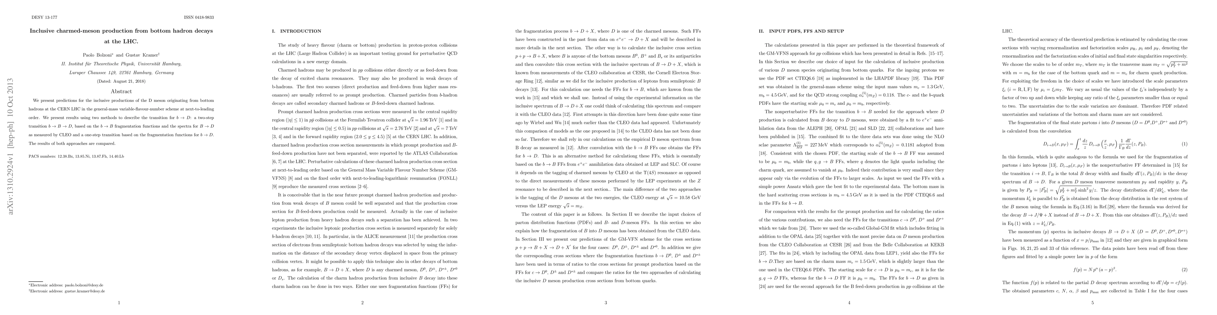 Researchers at the LHC provide predictions for inclusive D-meson production from bottom hadron decays using two different transition methods, comparing their results to find more accurate predictions.