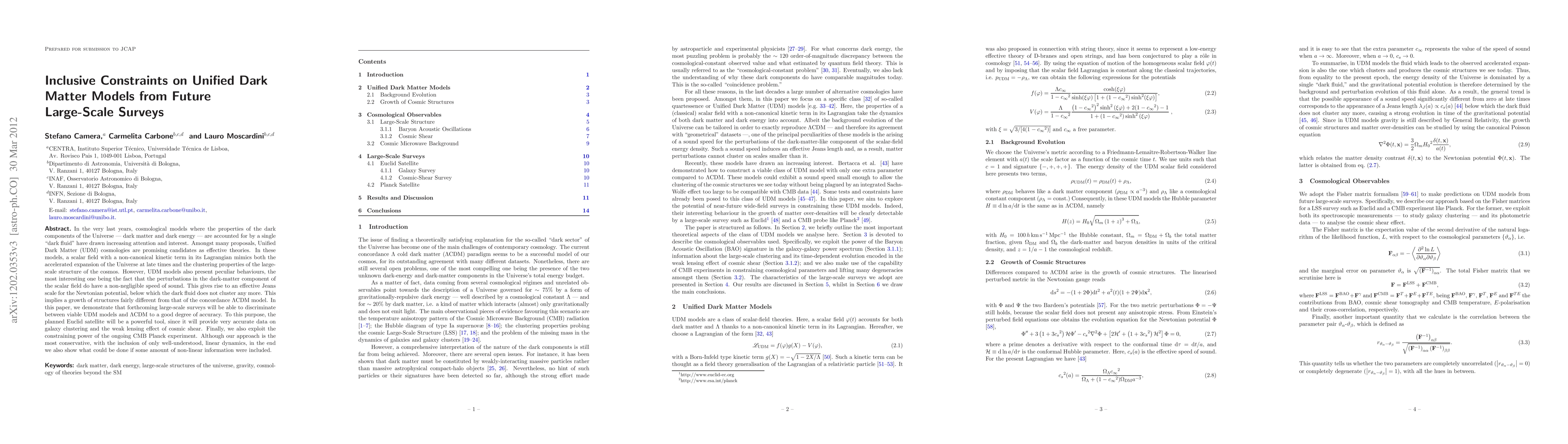 Future large-scale surveys like Euclid will be able to distinguish between Unified Dark Matter models and LCDM with high accuracy, providing new insights into dark matter's behavior.