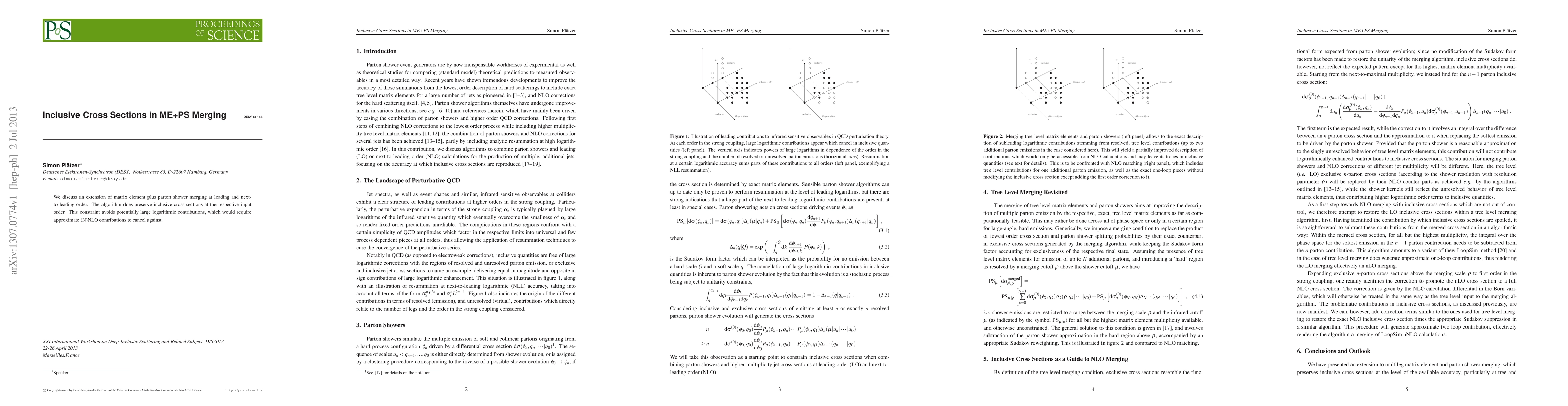 We discuss an extension of matrix element plus parton shower merging at leading and next-to-leading order. The algorithm does preserve inclusive cross sections at the respective input order. This constraint avoids potentially large logarithmic contributions, which would require approximate (N)NLO contributions to cancel against.