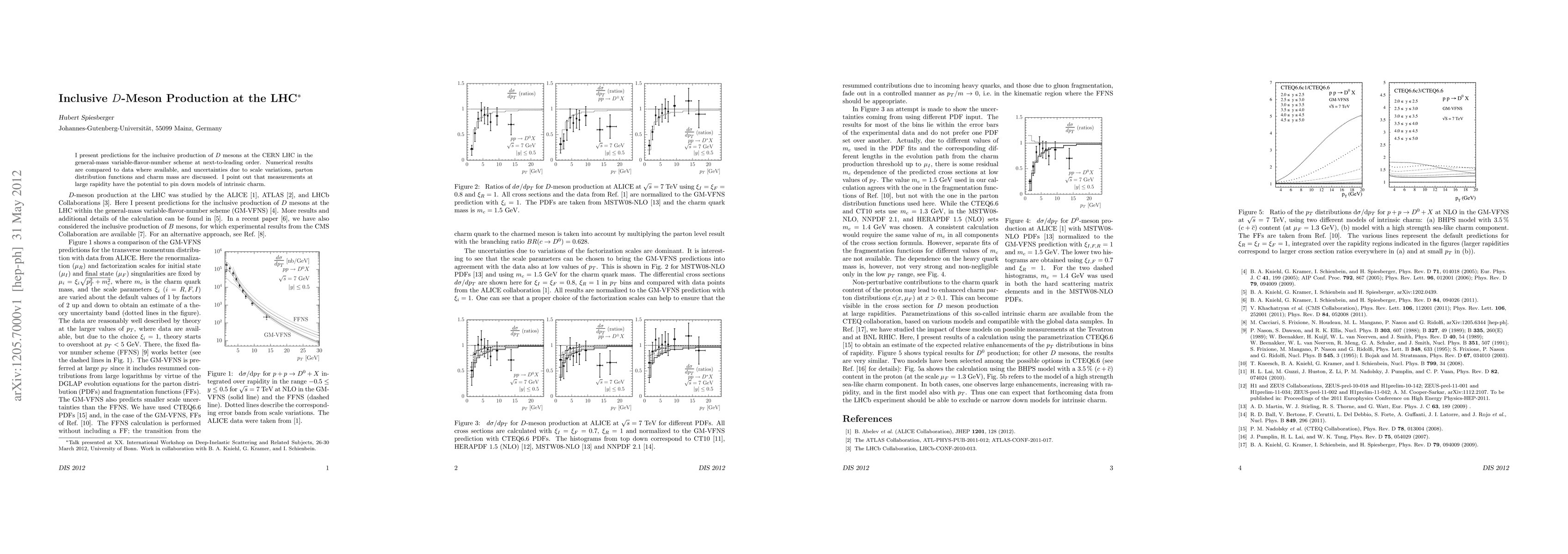 I present predictions for the inclusive production of D mesons at the CERN LHC in the general-mass variable-flavor-number scheme at next-to-leading order. Numerical results are compared to data where available, and uncertainties due to scale variations, parton distribution functions and charm mass are discussed. I point out that measurements at large rapidity have the potential to pin down models of intrinsic charm.