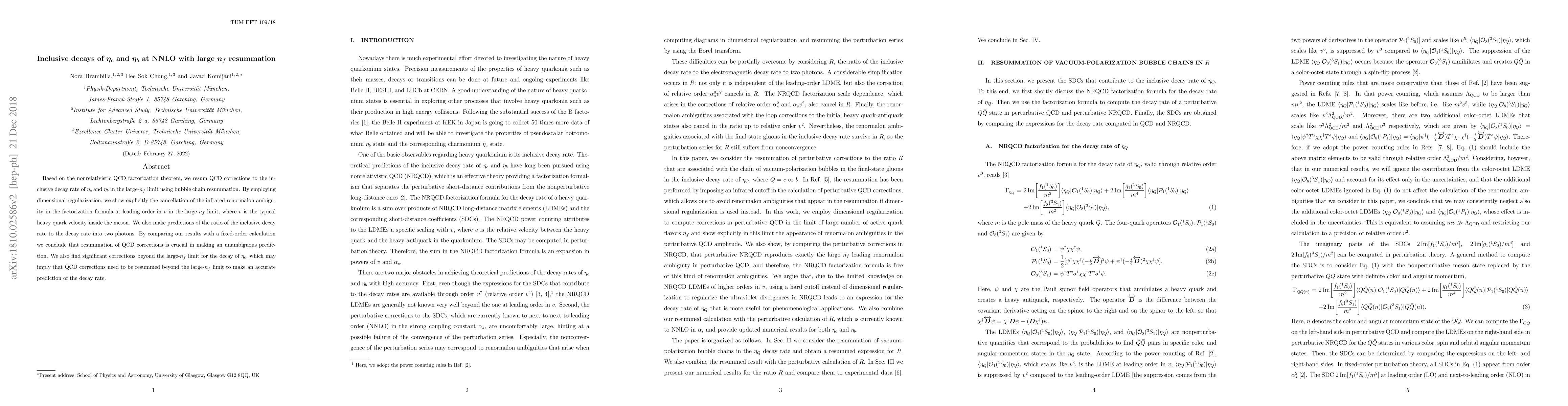 The study employs nonrelativistic QCD factorization theorem, bubble chain resummation, and dimensional regularization to resum QCD corrections for inclusive decay rates of η_c and η_b in the large-n_f limit.
