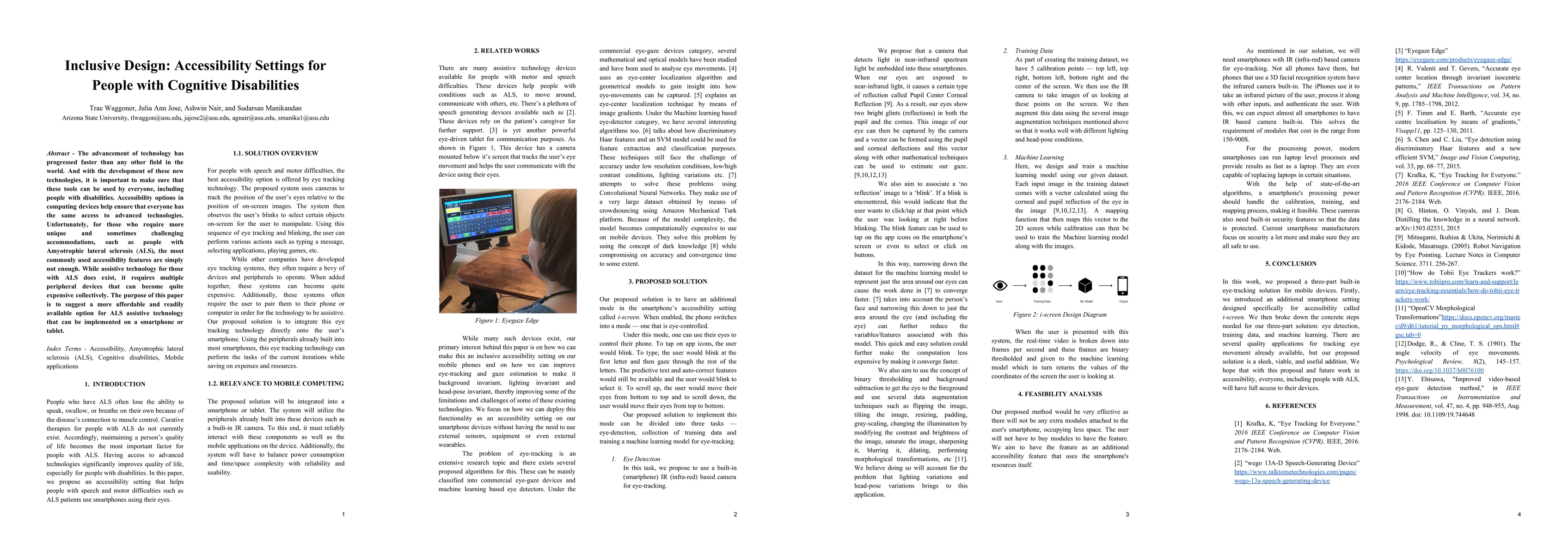 This paper explores the need for more inclusive design in technology, particularly for people with cognitive disabilities like ALS, and proposes a cost-effective, smartphone-based solution to replace expensive assistive devices. The aim is to enhance accessibility and usability for individuals requiring unique accommodations.