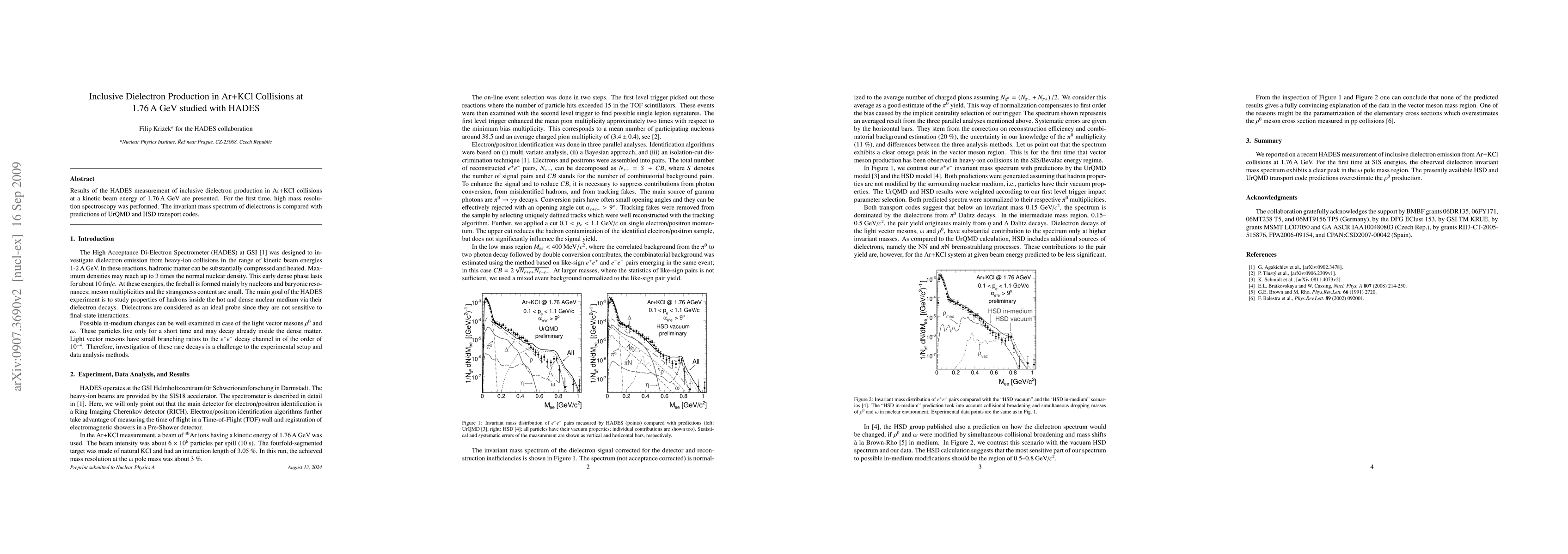 Results of the HADES measurement of inclusive dielectron production in Ar+KCl collisions at a kinetic beam energy of 1.76 AGeV are presented. For the first time, high mass resolution spectroscopy was performed. The invariant mass spectrum of dielectrons is compared with predictions of UrQMD and HSD transport codes.