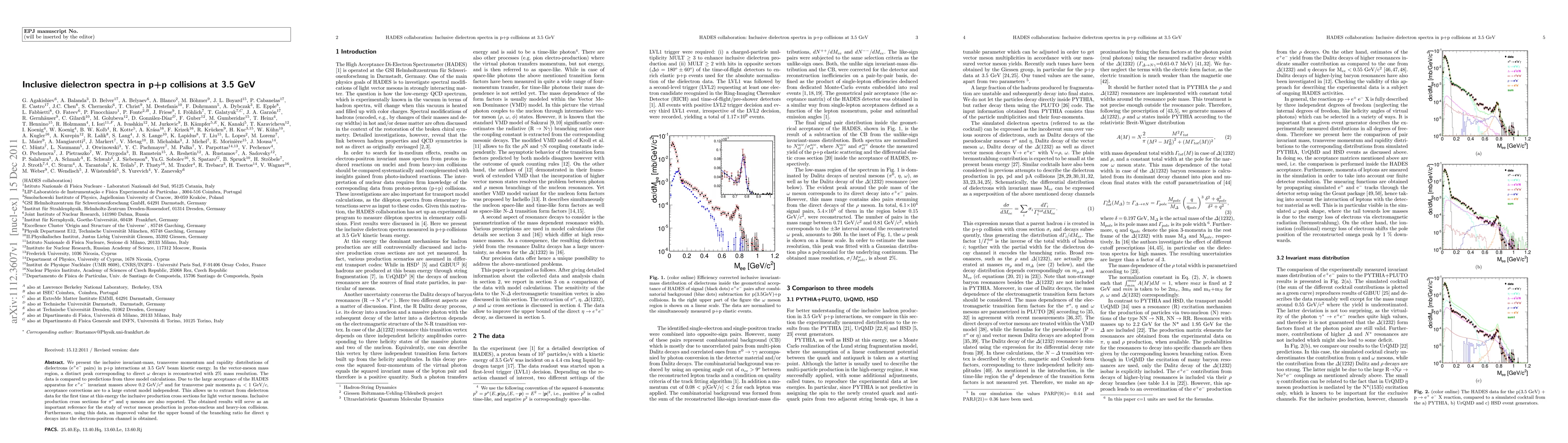 This study reports on the inclusive dielectron spectra in p+p collisions at 3.5 GeV, revealing a distinct peak corresponding to direct $\omega$ decays with 2% mass resolution. The results provide the first inclusive production cross sections for light vector mesons at this energy, serving as a reference for future vector meson studies in different collision types.