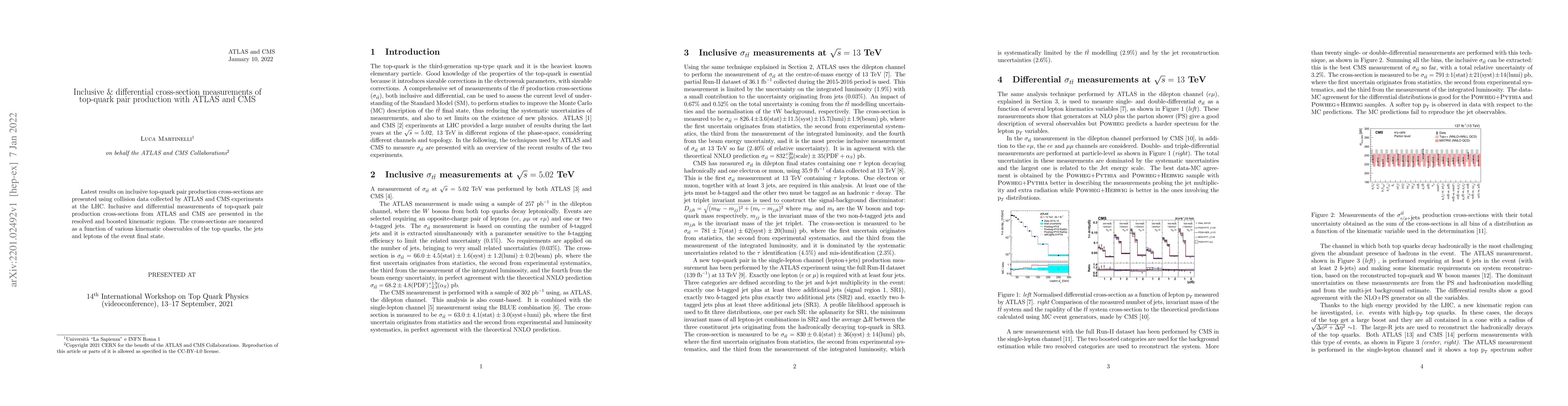 This paper presents the latest inclusive and differential cross-section measurements for top-quark pair production from the ATLAS and CMS experiments at the LHC, focusing on both resolved and boosted kinematic regions, and analyzing the cross-sections based on various kinematic observables of the top quarks and their associated jets and leptons.