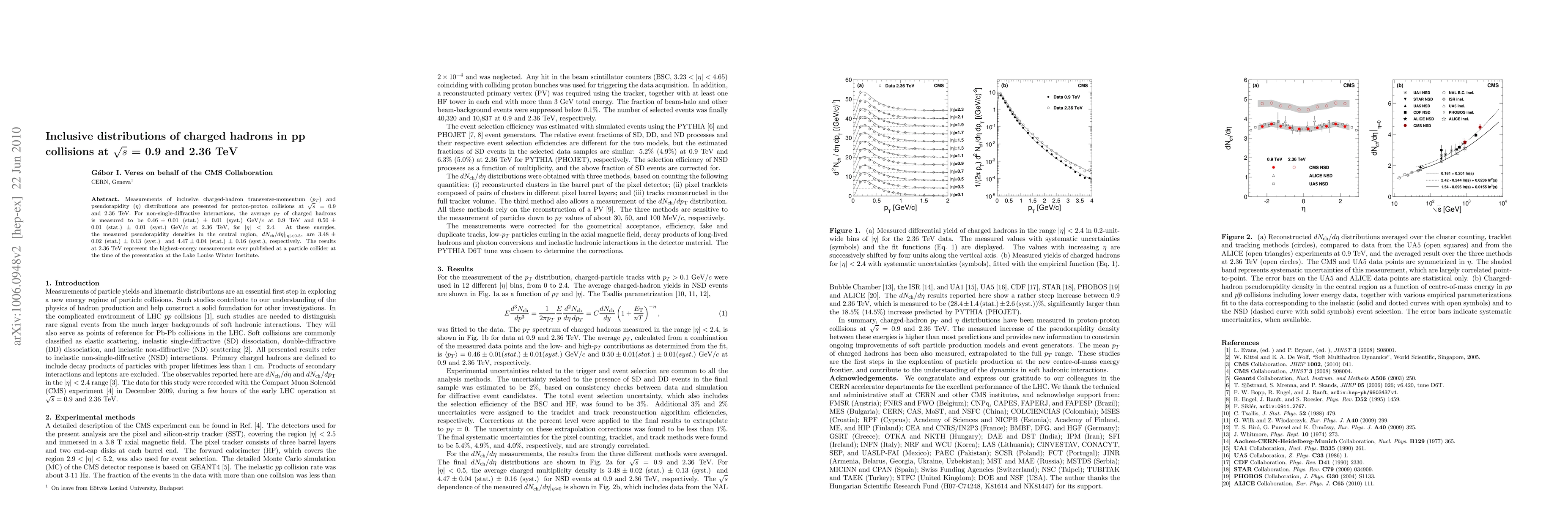 This paper presents measurements of inclusive charged-hadron distributions in proton-proton collisions at 0.9 and 2.36 TeV, showing average transverse momentum and pseudorapidity densities, with the latter being the highest-energy results at the time of publication.