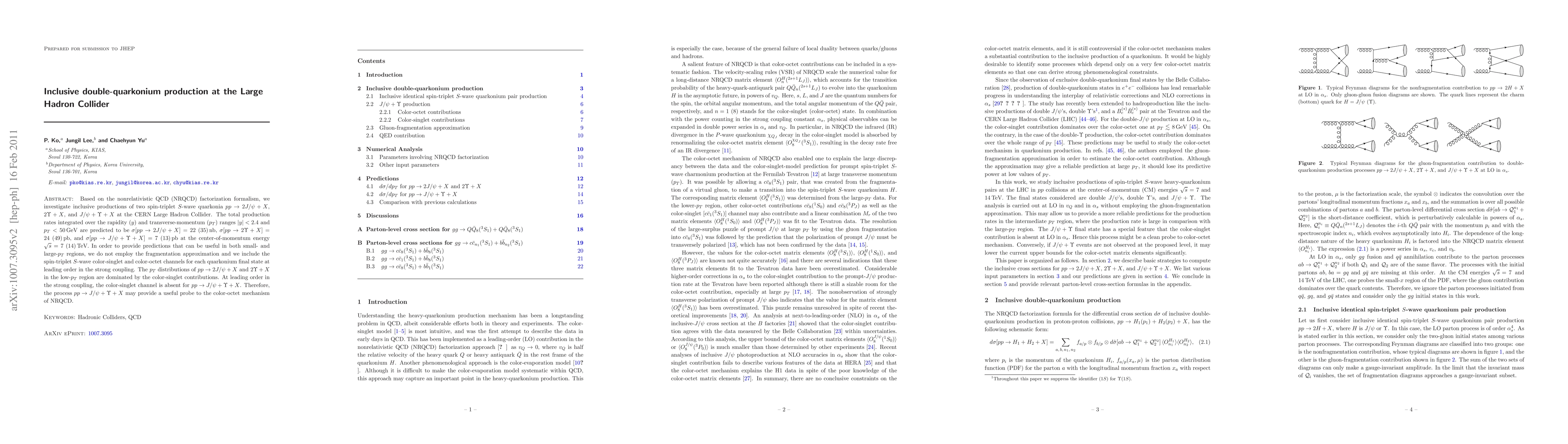 Researchers at the Large Hadron Collider predicted inclusive production rates for two quarkonium states, with significant variations in total cross-sections and p_T distributions among the three final states.