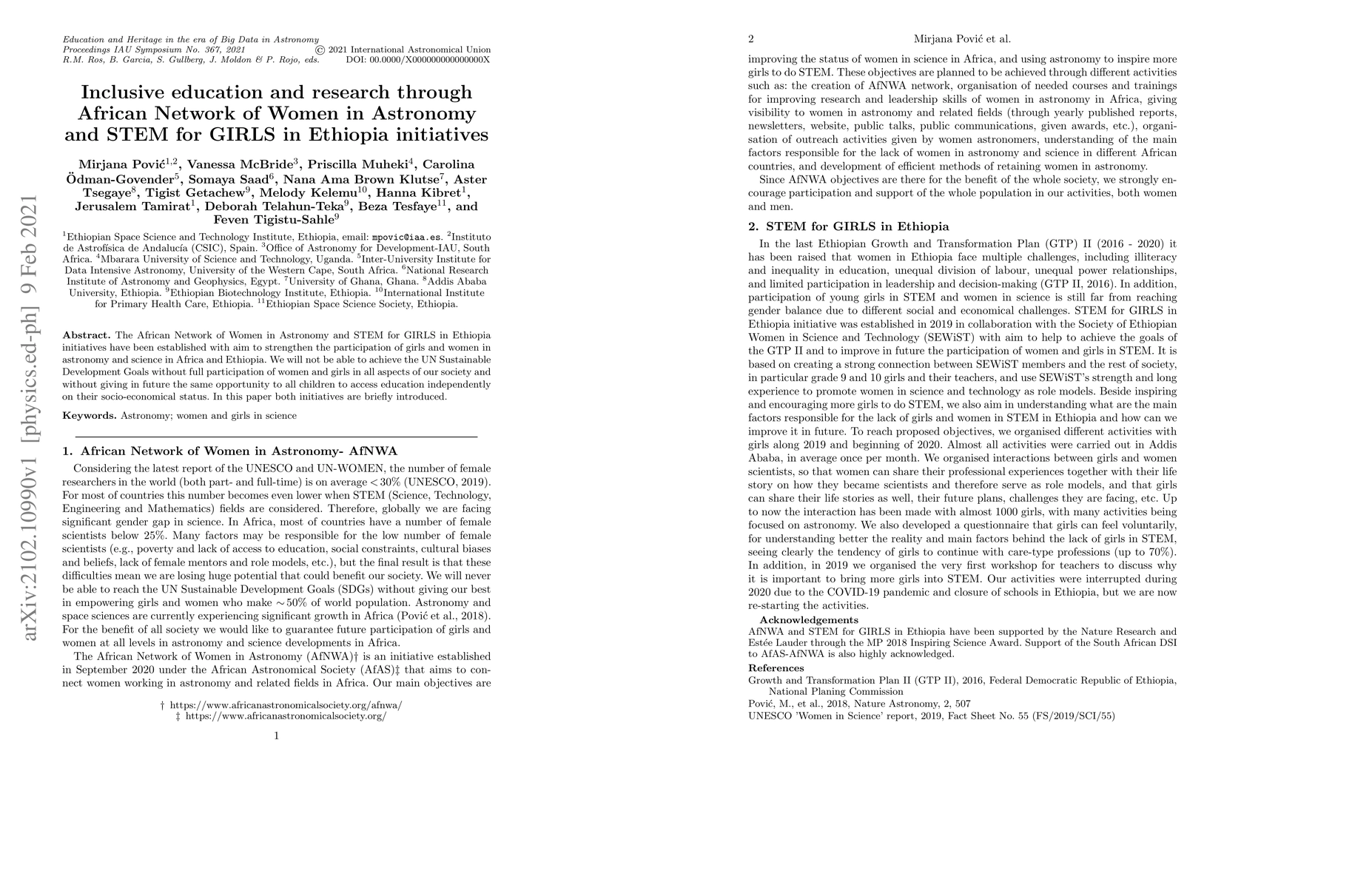 This paper introduces the African Network of Women in Astronomy and STEM for GIRLS in Ethiopia initiatives aimed at enhancing girls' and women's participation in astronomy and science, emphasizing the importance of inclusive education for achieving UN Sustainable Development Goals.