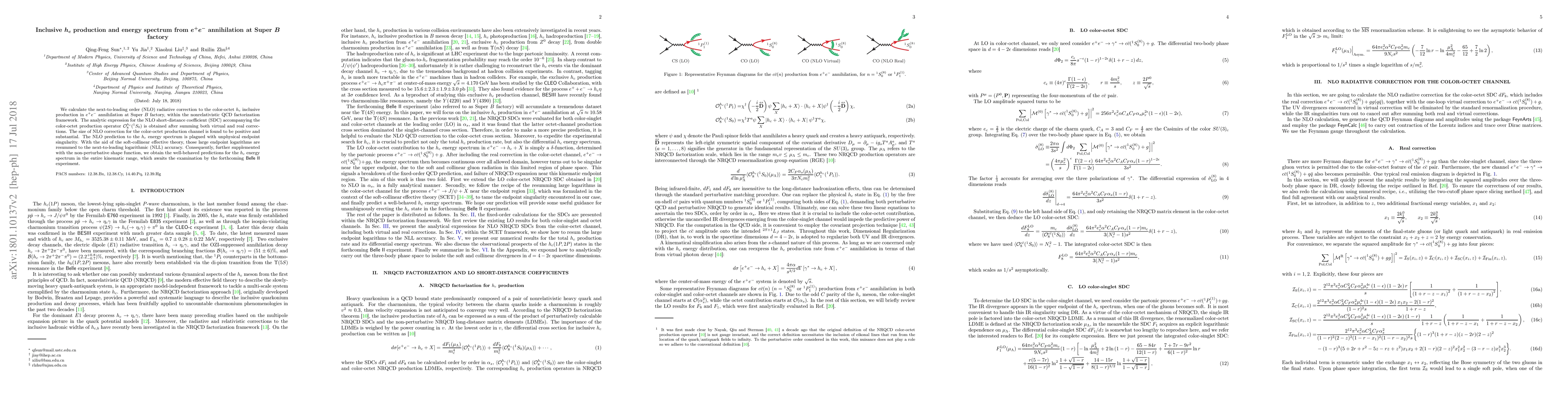 This paper calculates the next-to-leading order radiative correction for inclusive $h_c$ production in $e^+ e^-$ annihilation at the Super $B$ factory, finding substantial positive corrections. The study resolves endpoint singularities in the energy spectrum using the soft-collinear effective theory and shape functions, providing well-behaved predictions for the $h_c$ energy spectrum for future experimental validation.