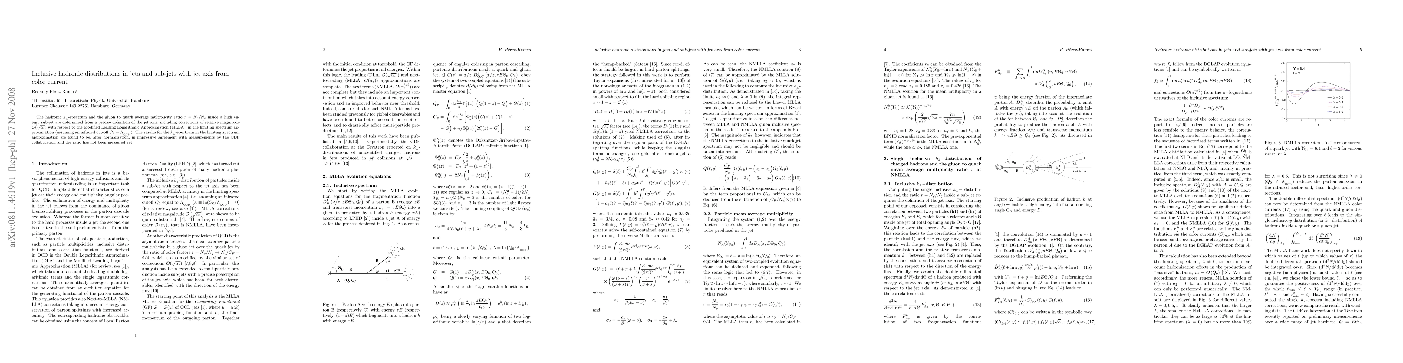 The hadronic $\kt$-spectrum and the gluon to quark average multiplicity ratio $r=N_g/N_q$ inside a high energy sub-jet are determined from a precise definition of the jet axis, including corrections of relative magnitude ${\cal O}(\sqrt{\alpha_s})$ with respect to the Modified Leading Logarithmic Approximation (MLLA), in the limiting spectrum approximation (assuming an infrared cut-off $Q_0 =\lqcd$). The results for the $\kt$-spectrum in the limiting spectrum approximation are found to be, after normalization, in impressive agreement with measurements by the CDF collaboration and the ratio has not been measured yet.