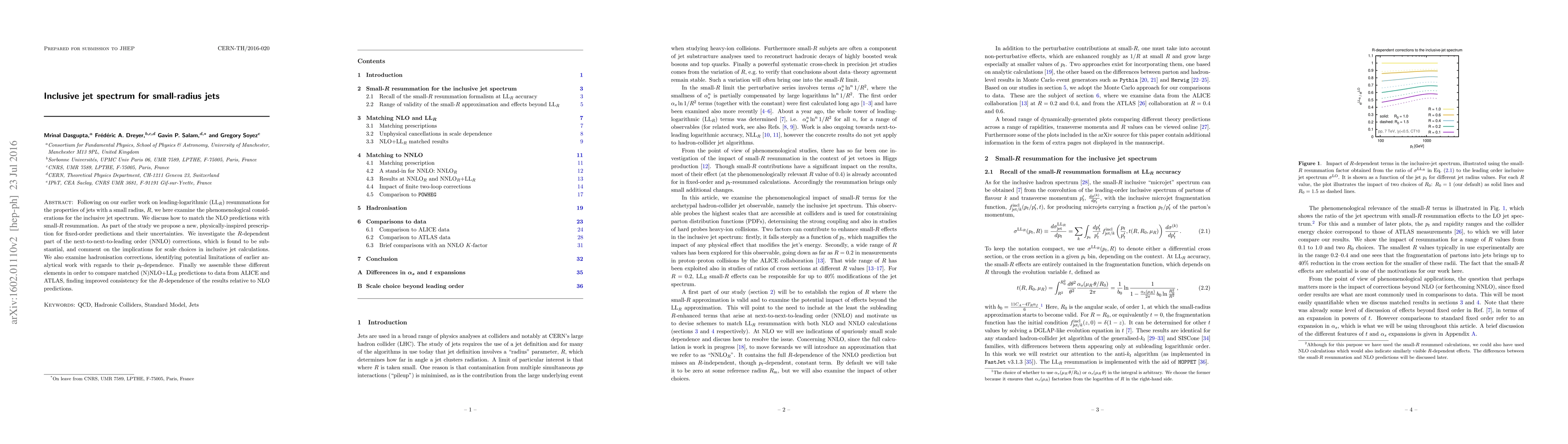 Following on our earlier work on leading-logarithmic (LLR) resummations for the properties of jets with a small radius, R, we here examine the phenomenological considerations for the inclusive jet spectrum. We discuss how to match the NLO predictions with small-R resummation. As part of the study we propose a new, physically-inspired prescription for fixed-order predictions and their uncertainties. We investigate the R-dependent part of the next-to-next-to-leading order (NNLO) corrections, which is found to be substantial, and comment on the implications for scale choices in inclusive jet calculations. We also examine hadronisation corrections, identifying potential limitations of earlier analytical work with regards to their $p_t$-dependence. Finally we assemble these different elements in order to compare matched (N)NLO+LLR predictions to data from ALICE and ATLAS, finding improved consistency for the R-dependence of the results relative to NLO predictions.
