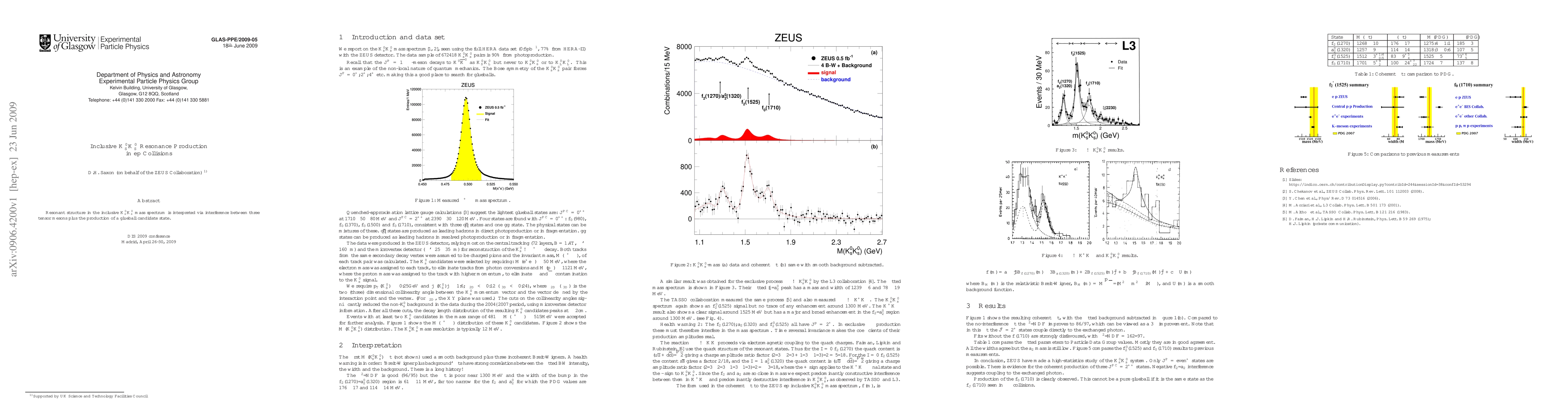 Resonant structure in the inclusive K0sK0s mass spectrum is interpreted via interference between three tensor mesons plus the production of a glueball candidate state
