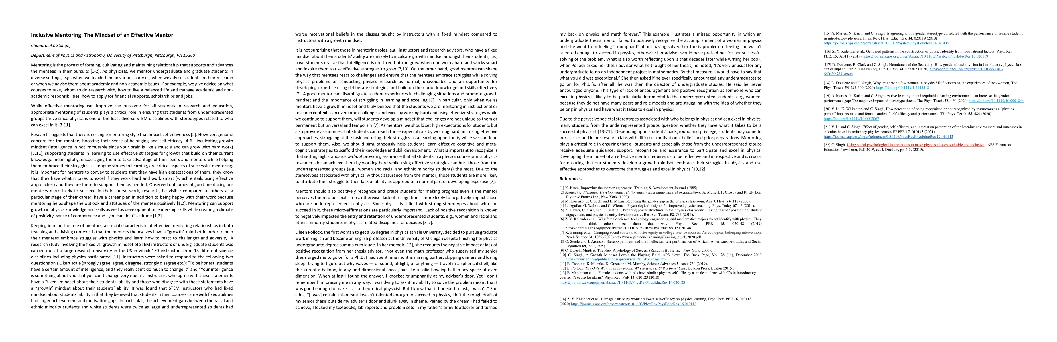 This paper outlines the mindset of an effective mentor, providing actionable guidelines to foster inclusivity and mentoring excellence.