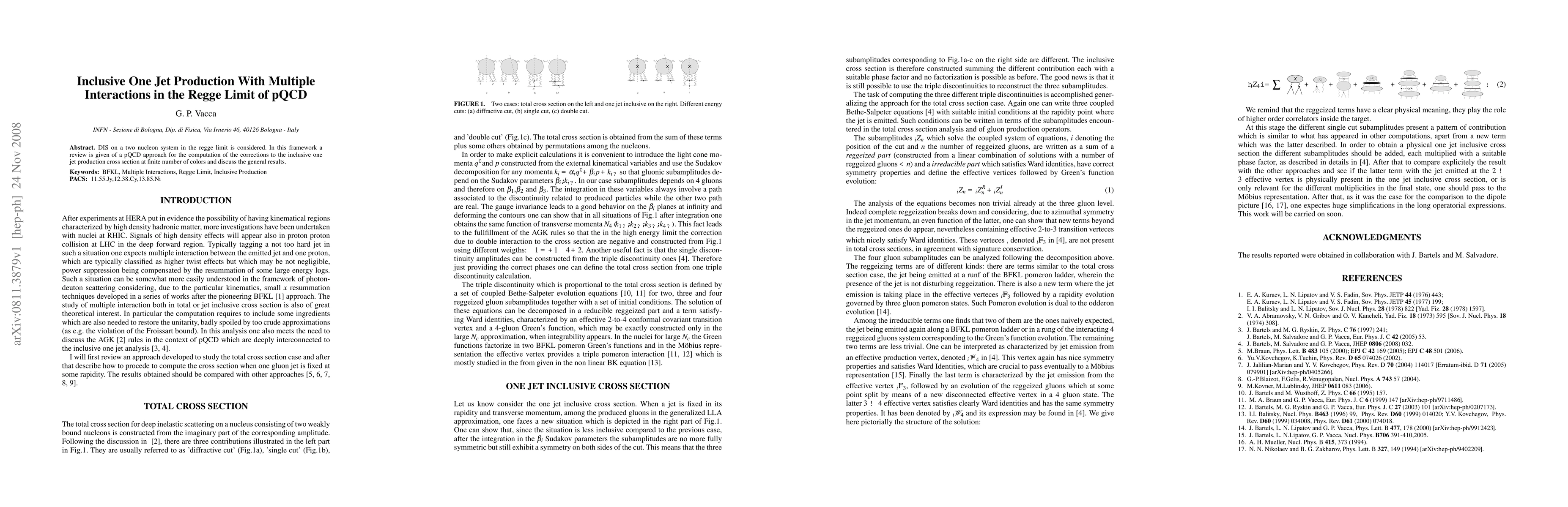 DIS on a two nucleon system in the regge limit is considered. In this framework a review is given of a pQCD approach for the computation of the corrections to the inclusive one jet production cross section at finite number of colors and discuss the general results.