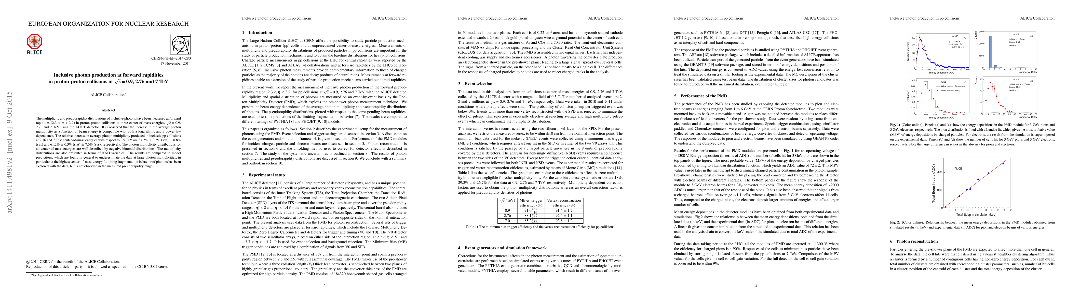 This study measures inclusive photon production in proton-proton collisions at forward rapidities across three energies, finding that photon multiplicity increases logarithmically or power-law with energy, with significant increases at 2.76 and 7 TeV compared to 0.9 TeV. The results are better described by negative binomial distributions than model predictions.
