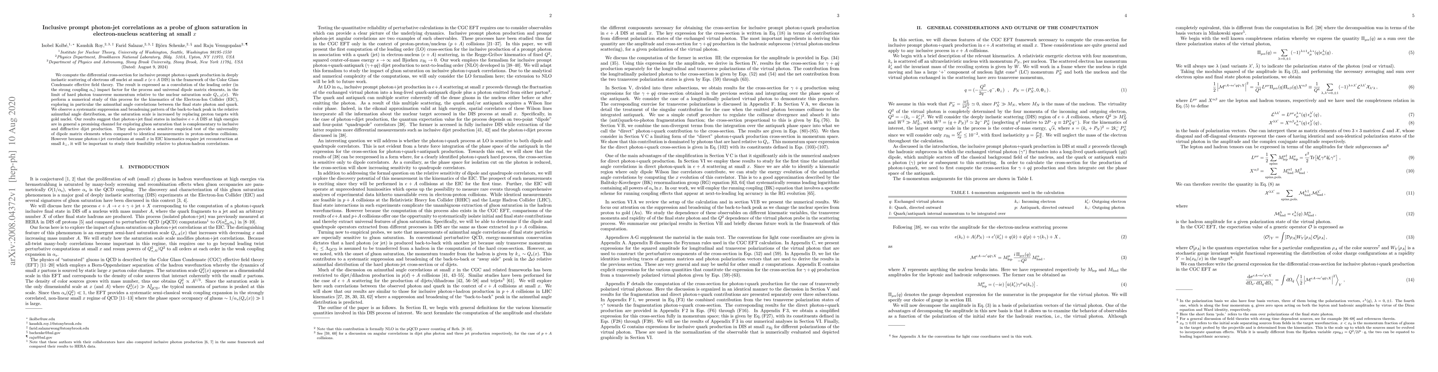 This paper investigates inclusive prompt photon-jet correlations in electron-nucleus scattering at small $x$ to probe gluon saturation in the Color Glass Condensate framework. It finds a systematic suppression and broadening of the back-to-back peak in the azimuthal angle distribution, indicating photon+jet final states as a promising channel for exploring gluon saturation.