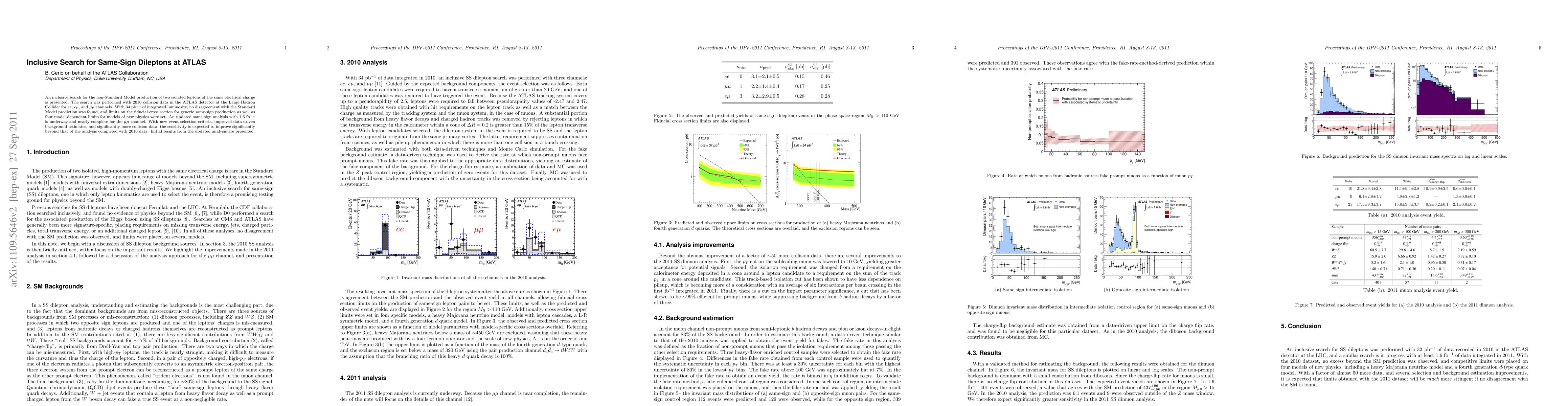 An inclusive search for the non-Standard Model production of two isolated leptons of the same electrical charge is presented. The search was performed with 2010 collision data in the ATLAS detector at the Large Hadron Collider for ee, e{\mu}, and {\mu}{\mu} channels. With 34 pb-1 of integrated luminosity, no disagreement with the Standard Model prediction was found, and limits on the fiducial cross section for generic same-sign production as well as four model-dependent limits for models of new physics were set. An updated same sign analysis with 1.6 fb-1 is underway and nearly complete for the {\mu}{\mu} channel. With new event selection criteria, improved data-driven background estimates, and significantly more collision data, the sensitivity is expected to improve significantly beyond that of the analysis completed with data from 2010. Initial results from the updated analysis are presented.