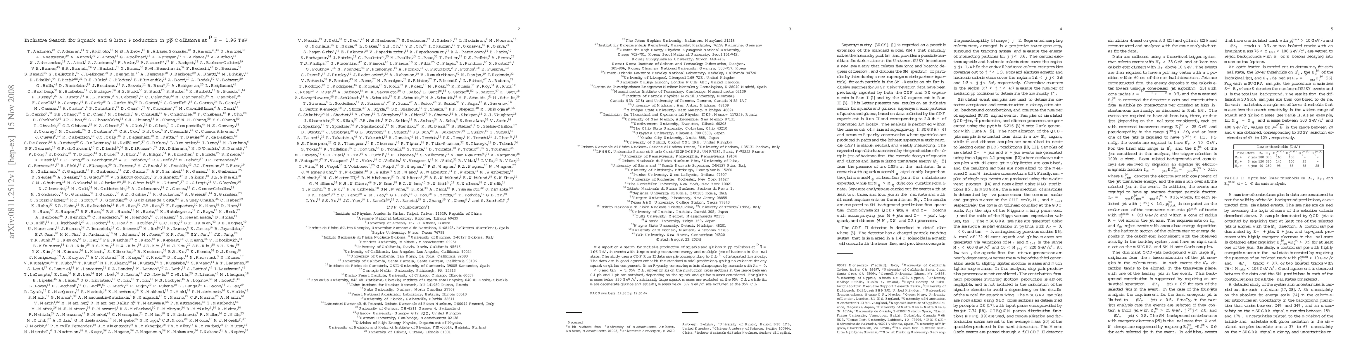 This study investigates the inclusive production of squarks and gluinos in proton-antiproton collisions at 1.96 TeV using CDF Run II data. No evidence for squark or gluino production is found, leading to upper limits on production cross sections and exclusions of certain mass ranges for these particles.