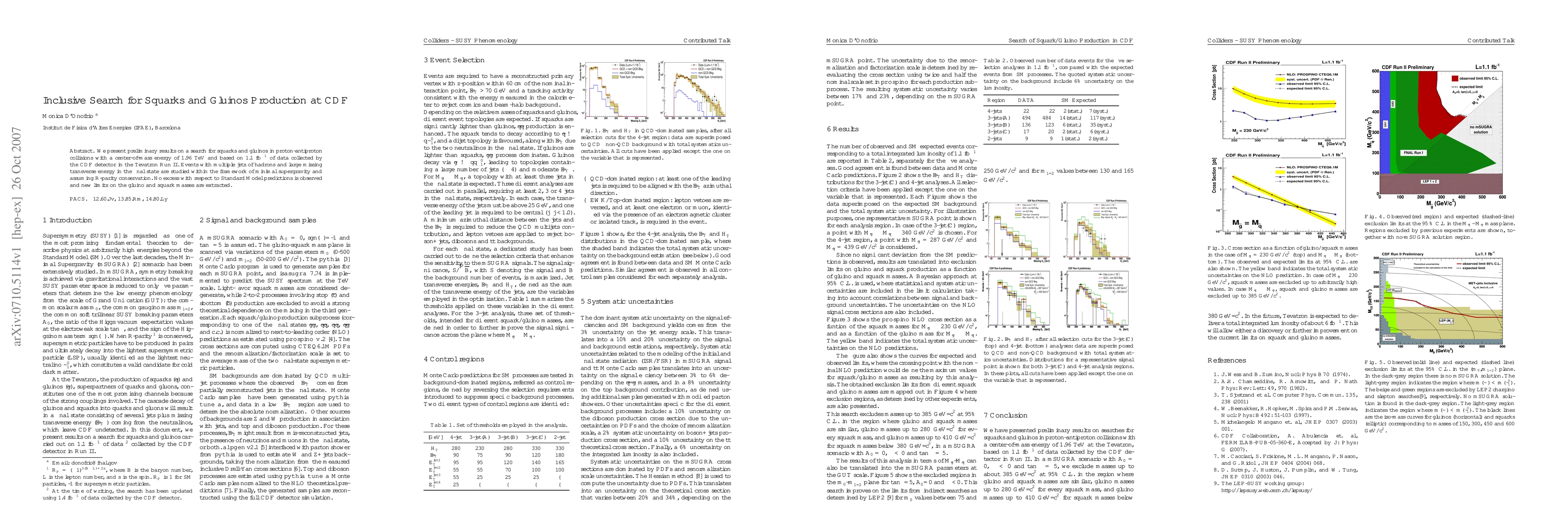 We present preliminary results on a search for squarks and gluinos in proton-antiproton collisions with a center-of-mass energy of 1.96 TeV and based on 1.1 fb-1 of data collected by the CDF detector in the Tevatron Run II. Events with multiple jets of hadrons and large missing transverse energy in the final state are studied within the framework of minimal supergravity and assuming R-parity conservation. No excess with respect to Standard Model predictions is observed and new limits on the gluino and squark masses are extracted.