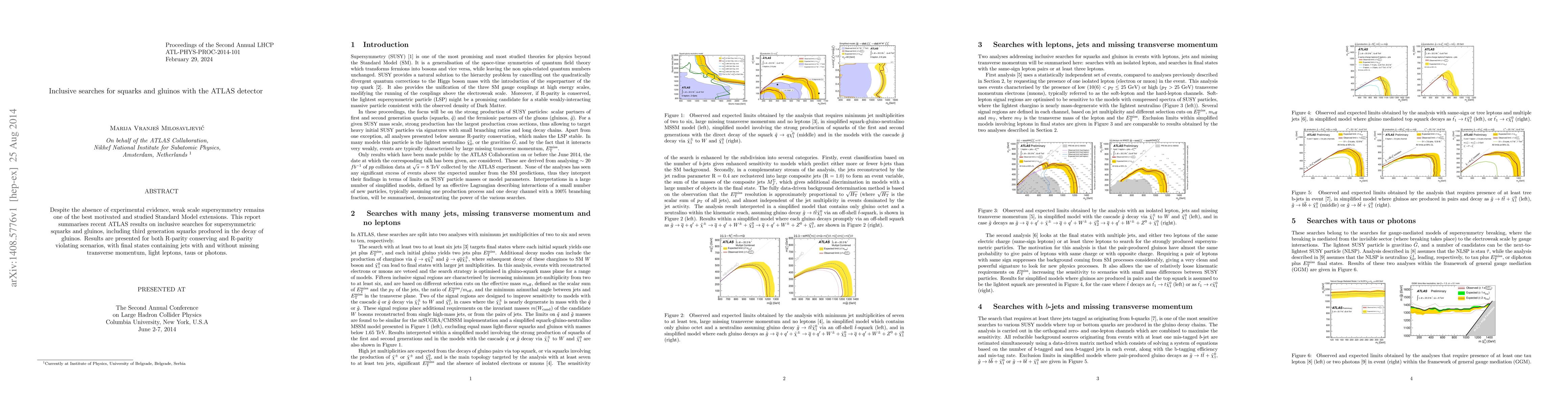 This paper summarizes recent ATLAS results on inclusive searches for supersymmetric squarks and gluinos, focusing on third-generation squarks from gluino decays, across both R-parity conserving and violating scenarios, with varied final states including jets and missing transverse momentum. No experimental evidence for these particles was found.