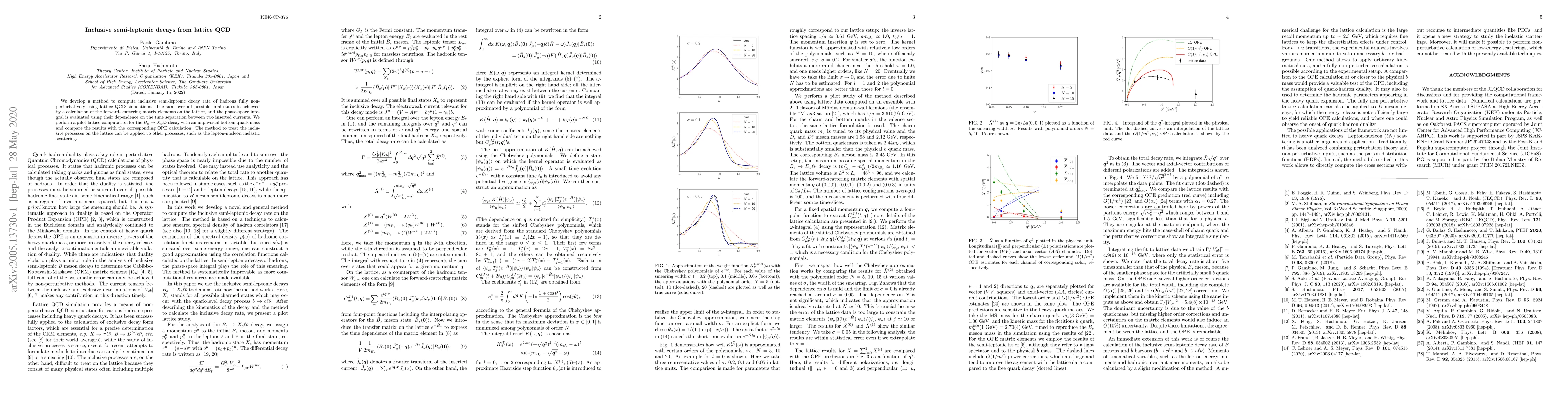We develop a method to compute inclusive semi-leptonic decay rate of hadrons fully non-perturbatively using lattice QCD simulations. The sum over all possible final states is achieved by a calculation of the forward-scattering matrix elements on the lattice, and the phase-space integral is evaluated using their dependence on the time separation between two inserted currents. We perform a pilot lattice computation for the B_s -> X_c l nu decay with an unphysical bottom quark mass and compare the results with the corresponding OPE calculation. The method to treat the inclusive processes on the lattice can be applied to other processes, such as the lepton-nucleon inelastic scattering.