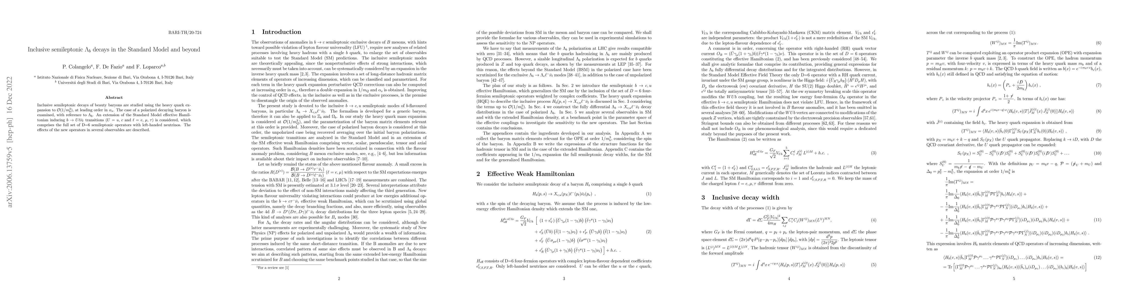 Inclusive semileptonic decays of beauty baryons are studied using the heavy quark expansion to ${\cal O}(1/m_b^3)$, at leading order in $\alpha_s$. The case of a polarized decaying baryon is examined, with reference to $\Lambda_b$. An extension of the Standard Model effective Hamiltonian inducing $b \to U \ell {\bar \nu}_ \ell$ transitions ($U=u,\,c$ and $\ell=e,\,\mu,\,\tau$) is considered, which comprises the full set of D=6 semileptonic operators with left-handed neutrinos. The effects of the new operators in several observables are described.