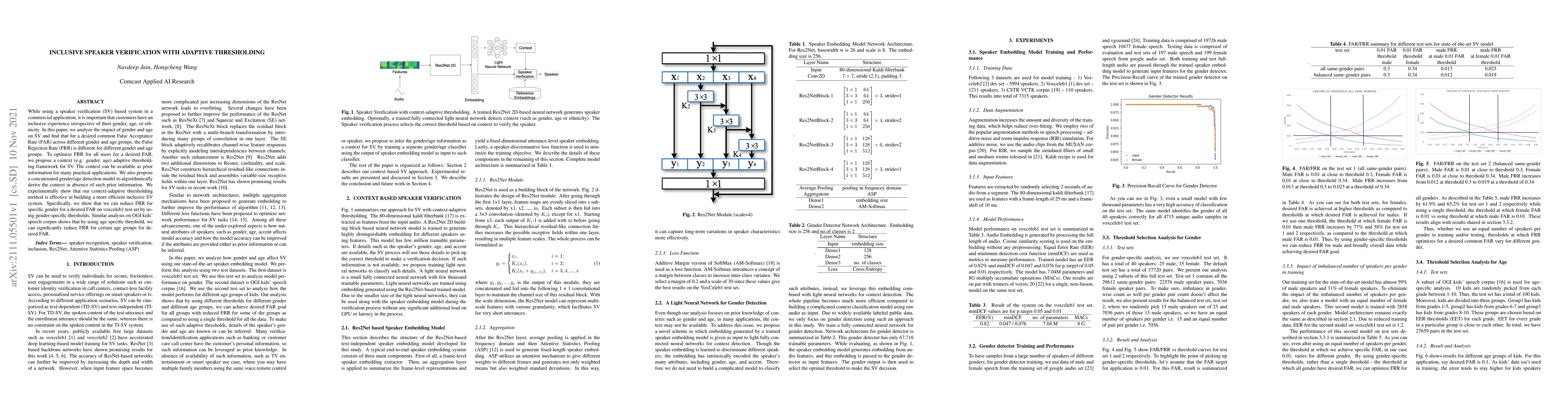 This paper proposes an adaptive thresholding framework for speaker verification (SV) to enhance inclusivity across gender and age groups. By using context-specific thresholds, the method aims to optimize False Rejection Rates (FRR) while maintaining a consistent False Acceptance Rate (FAR), demonstrating improved performance on datasets like VoxCeleb1 and OGI Kids.