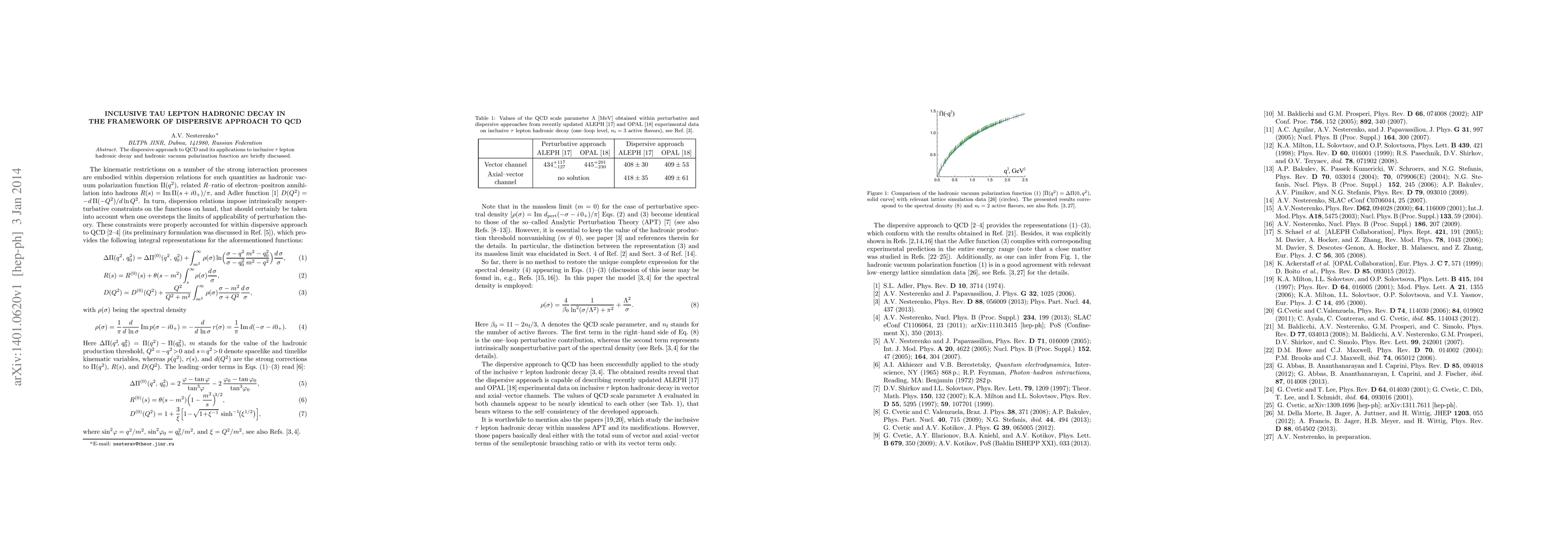 The dispersive approach to QCD and its applications to inclusive tau lepton hadronic decay and hadronic vacuum polarization function are briefly discussed.