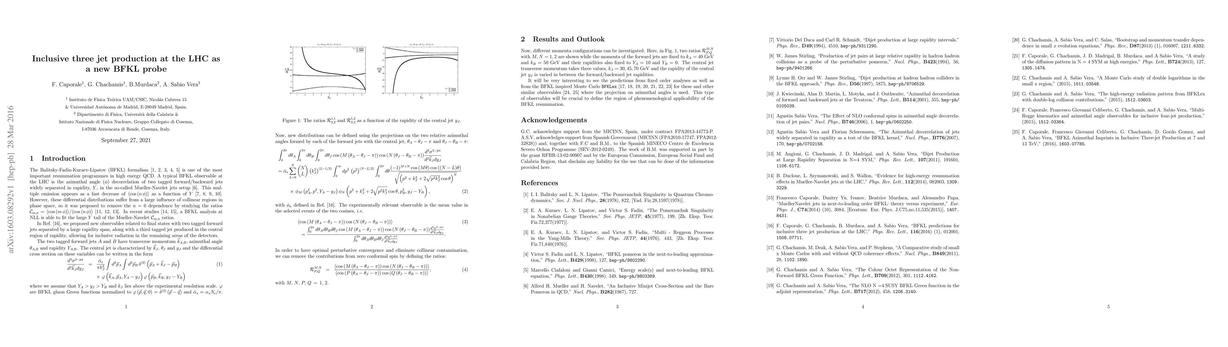 We discuss recently proposed observables, sensitive to BFKL dynamics, in the context of multijet production at the large hadron collider (LHC). In particular, we consider ratios of azimuthal angle differences in final states with three jets, well separated in rapidity from each other, with two of them being very forward/backward and the third one in the central region.