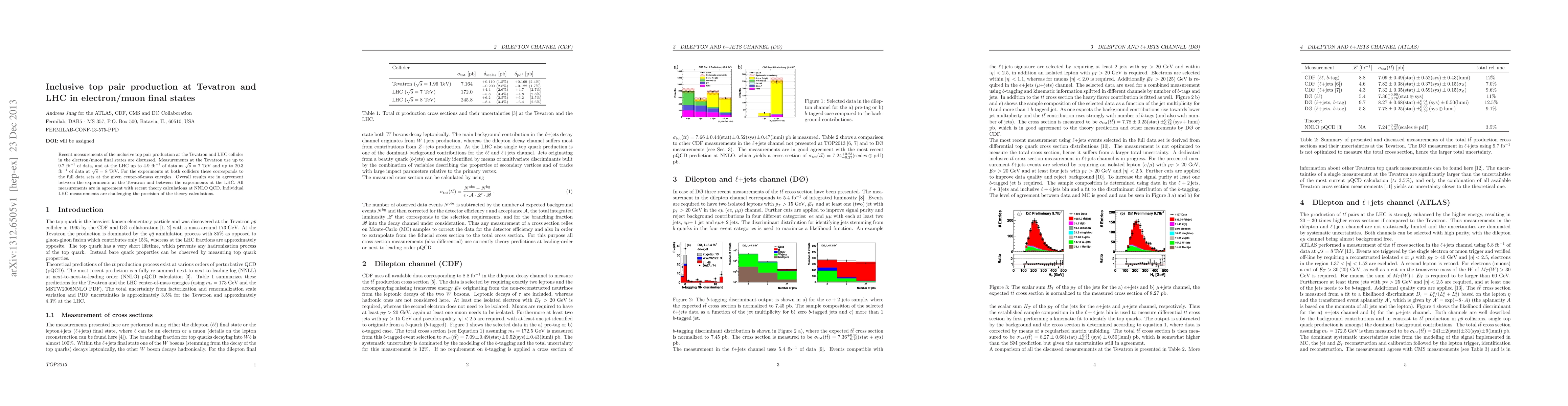 Recent measurements of the inclusive top pair production at the Tevatron and LHC collider in the electron/muon final states are discussed. Measurements at the Tevatron use up to 9.7 /fb of data, and at the LHC up to 4.9 /fb of data at $\sqrt{s}=7$ TeV and up to 20.3 /fb of data at $\sqrt{s}=8$ TeV. For the experiments at both colliders these corresponds to the full data sets at the given center-of-mass energies. Overall results are in agreement between the experiments at the Tevatron and between the experiments at the LHC. All measurements are in agreement with recent theory calculations at NNLO QCD. Individual LHC measurements are challenging the precision of the theory calculations.