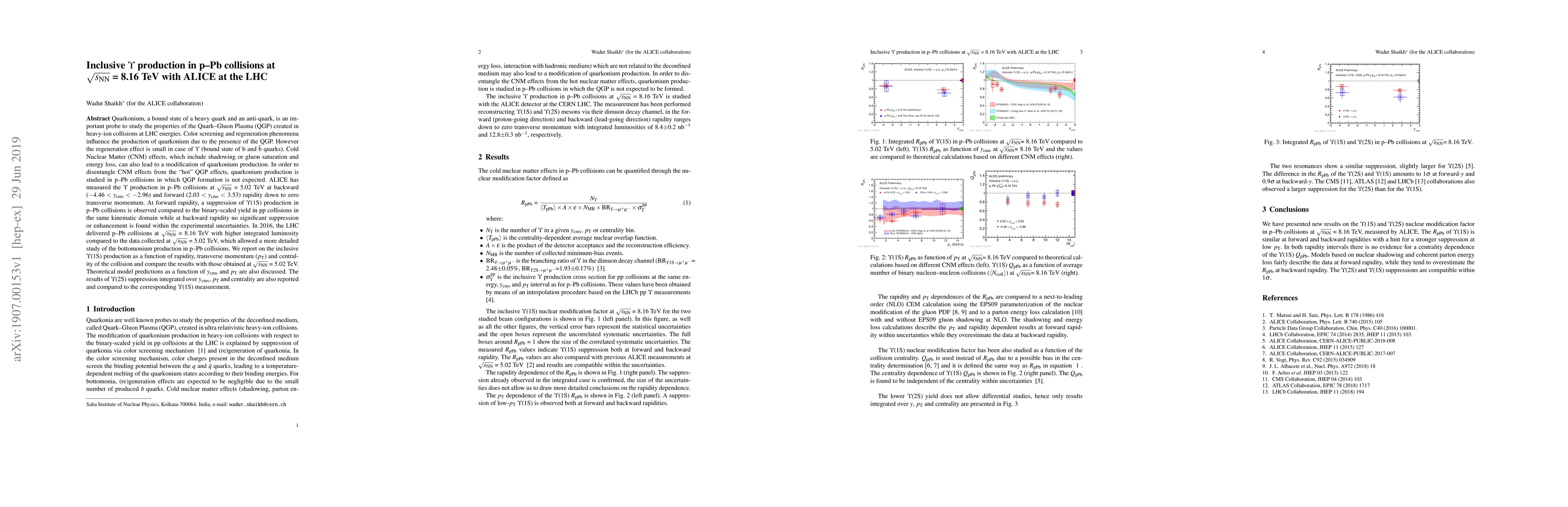 expected. ALICE has measured the $\Upsilon$ production in p--Pb collisions at