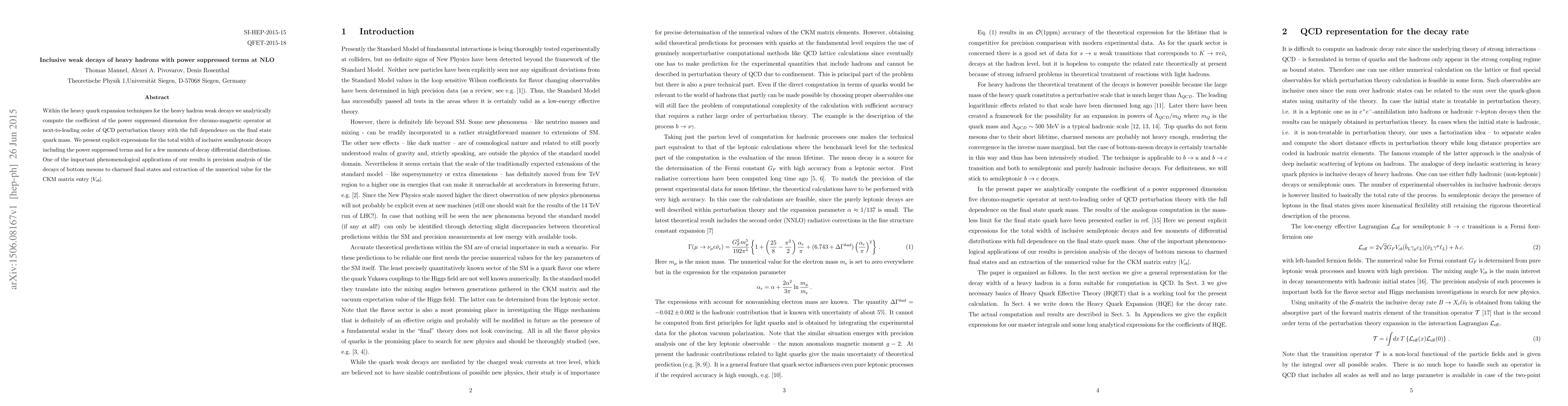 Researchers have calculated the power suppressed terms in inclusive weak decays of heavy hadrons using NLO QCD perturbation theory, with implications for precision analysis of bottom meson decays and extraction of the CKM matrix entry |V_{cb}|.