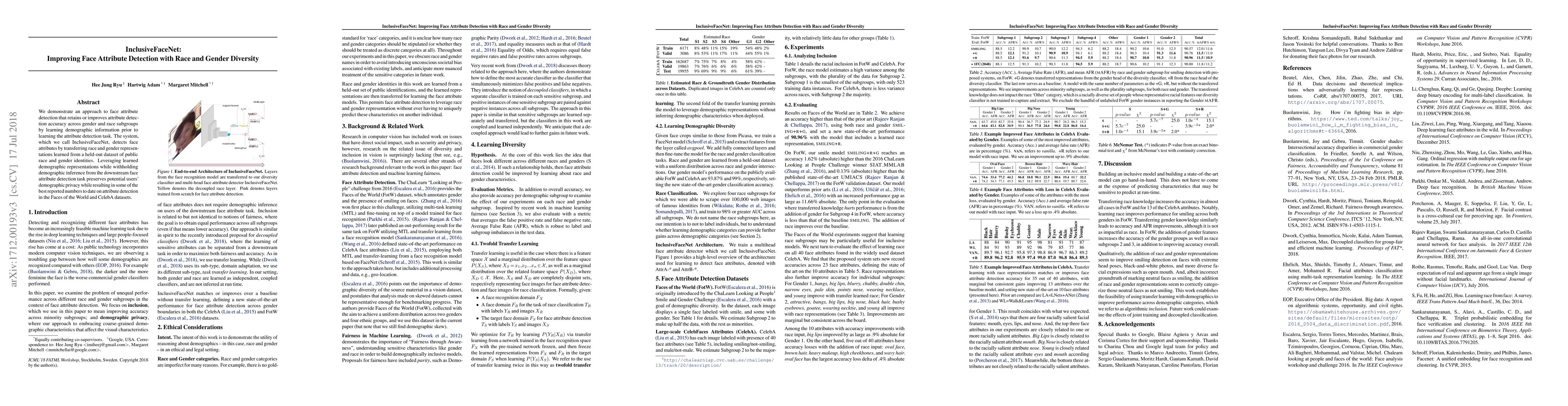 We demonstrate an approach to face attribute detection that retains or improves attribute detection accuracy across gender and race subgroups by learning demographic information prior to learning the attribute detection task. The system, which we call InclusiveFaceNet, detects face attributes by transferring race and gender representations learned from a held-out dataset of public race and gender identities. Leveraging learned demographic representations while withholding demographic inference from the downstream face attribute detection task preserves potential users' demographic privacy while resulting in some of the best reported numbers to date on attribute detection in the Faces of the World and CelebA datasets.